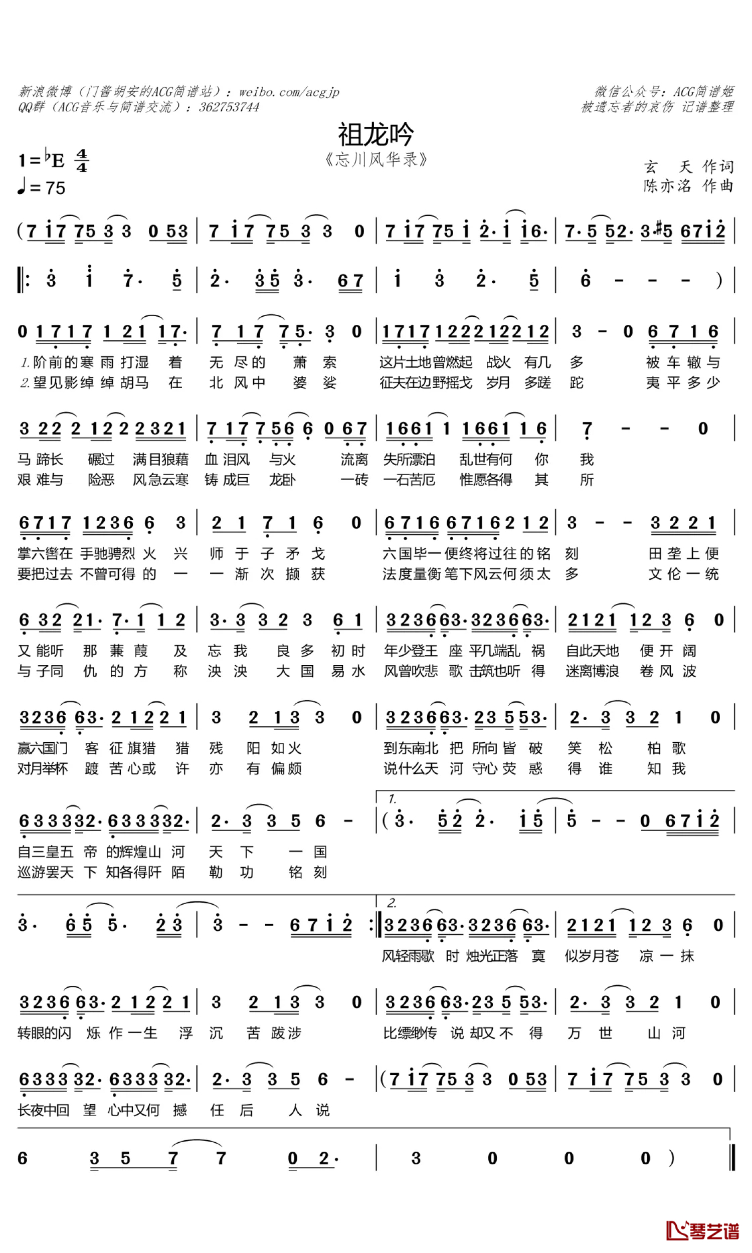 曲谱介绍: 祖龙吟简谱歌词阶前的寒雨打湿着无尽的萧索这片土地曾燃起战火有几多被车辙与马蹄长碾过满目狼藉血泪风与火流离失所漂泊乱世有何你我掌六辔在手驰骋烈火兴师于子矛戈六国毕一便终将过往的铭刻田垄上便又能听那蒹葭及忘我良多初时年少登王座平几端乱祸自此天地便开阔赢六国门客征旗猎猎残阳如火到东南北把所向皆破笑松柏歌自三皇五帝的辉煌山河天下一国望见影绰绰胡马在北风中婆娑征夫在边野摇戈岁月多蹉跎夷平多少艰难与险恶风急云寒铸成巨龙卧一砖一石苦厄惟愿各得其所要把过去不曾可得的一一渐次撷获法度量衡笔下风云何须太多