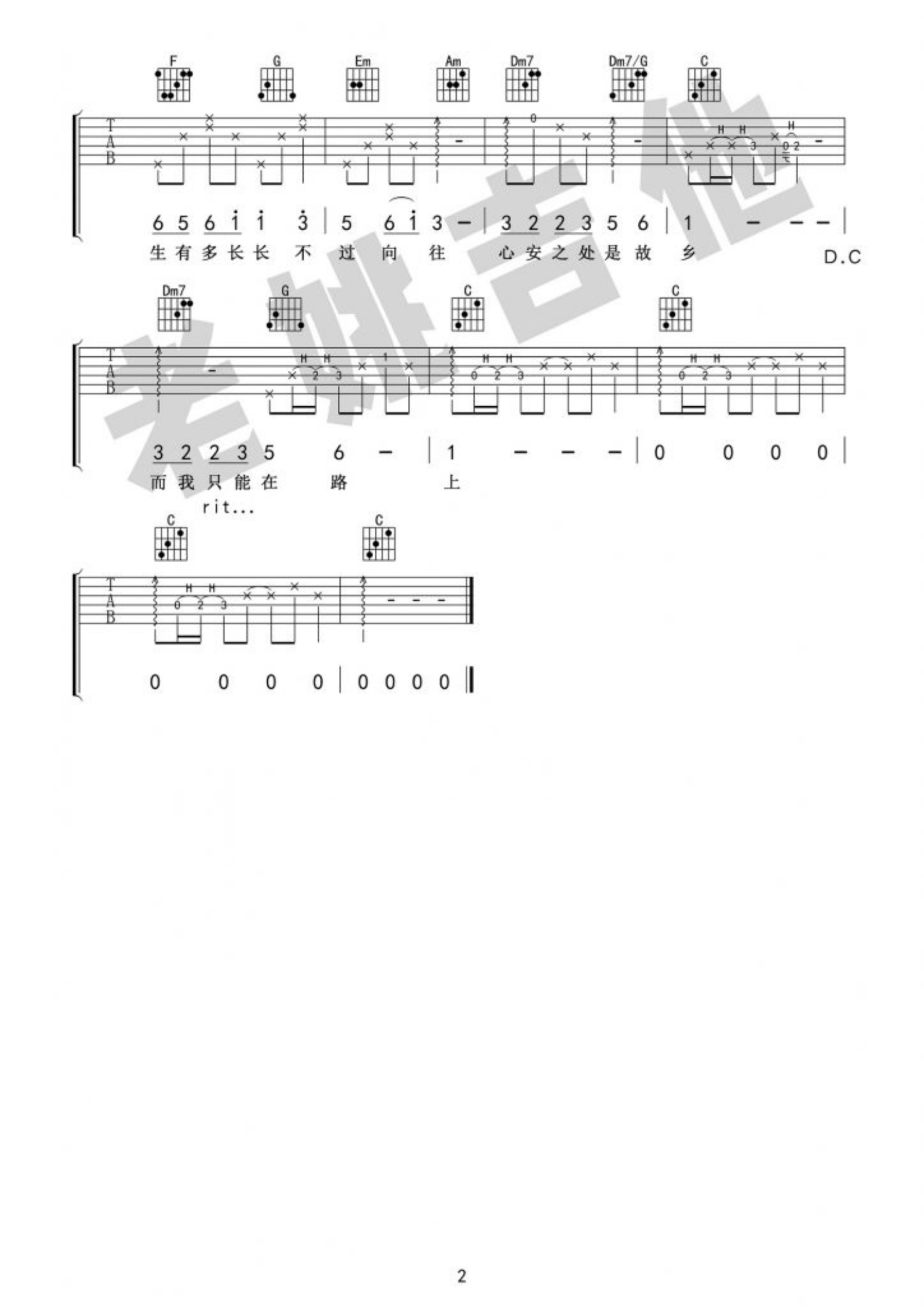 吉他弹唱C调来源:老姚吉他631 浏览2021-03-18 16:35发布图谱共2页