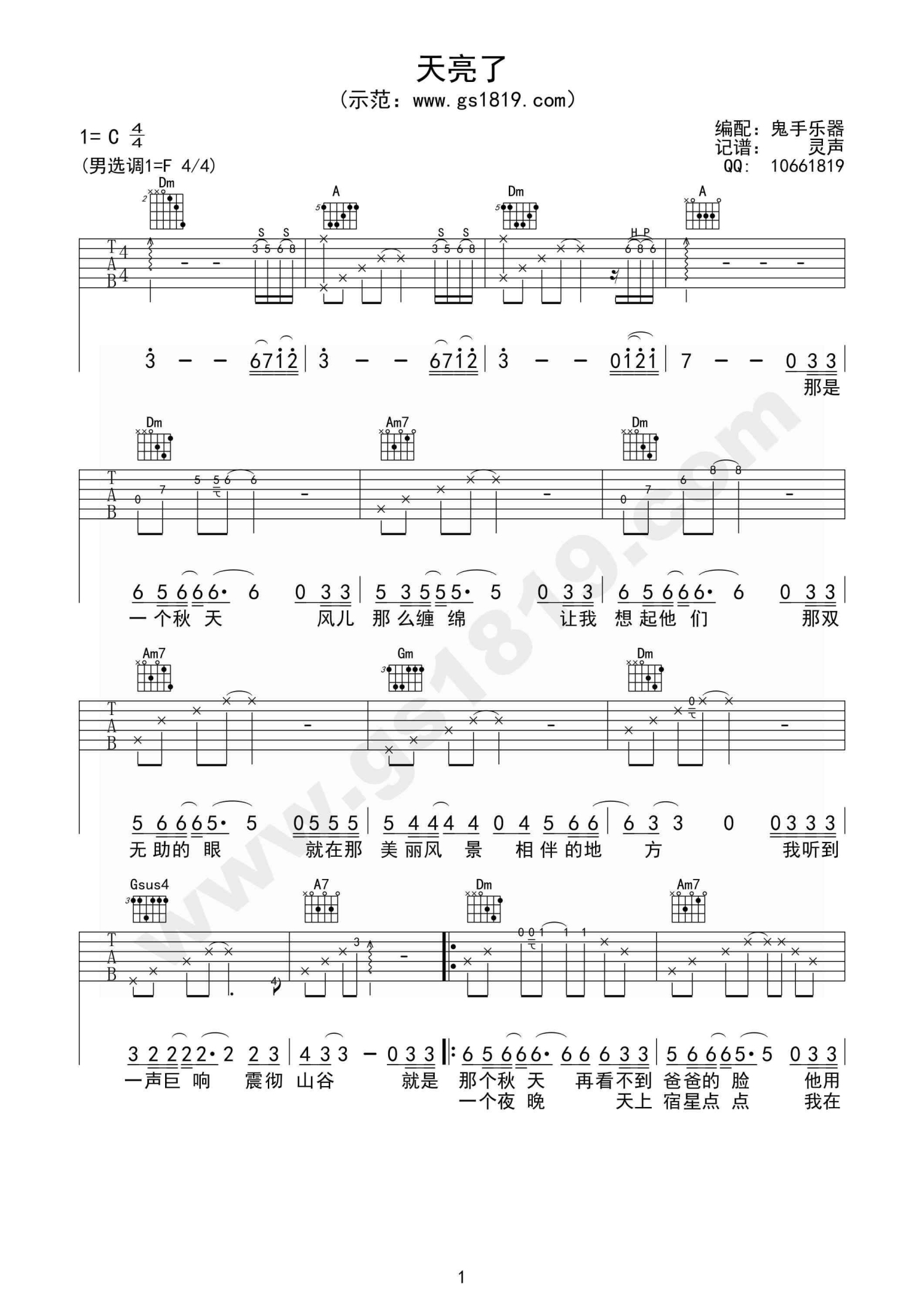 吉他弹唱F调来源:鬼手乐器--灵声3246 浏览2018-03-26 14:21发布图谱共3页