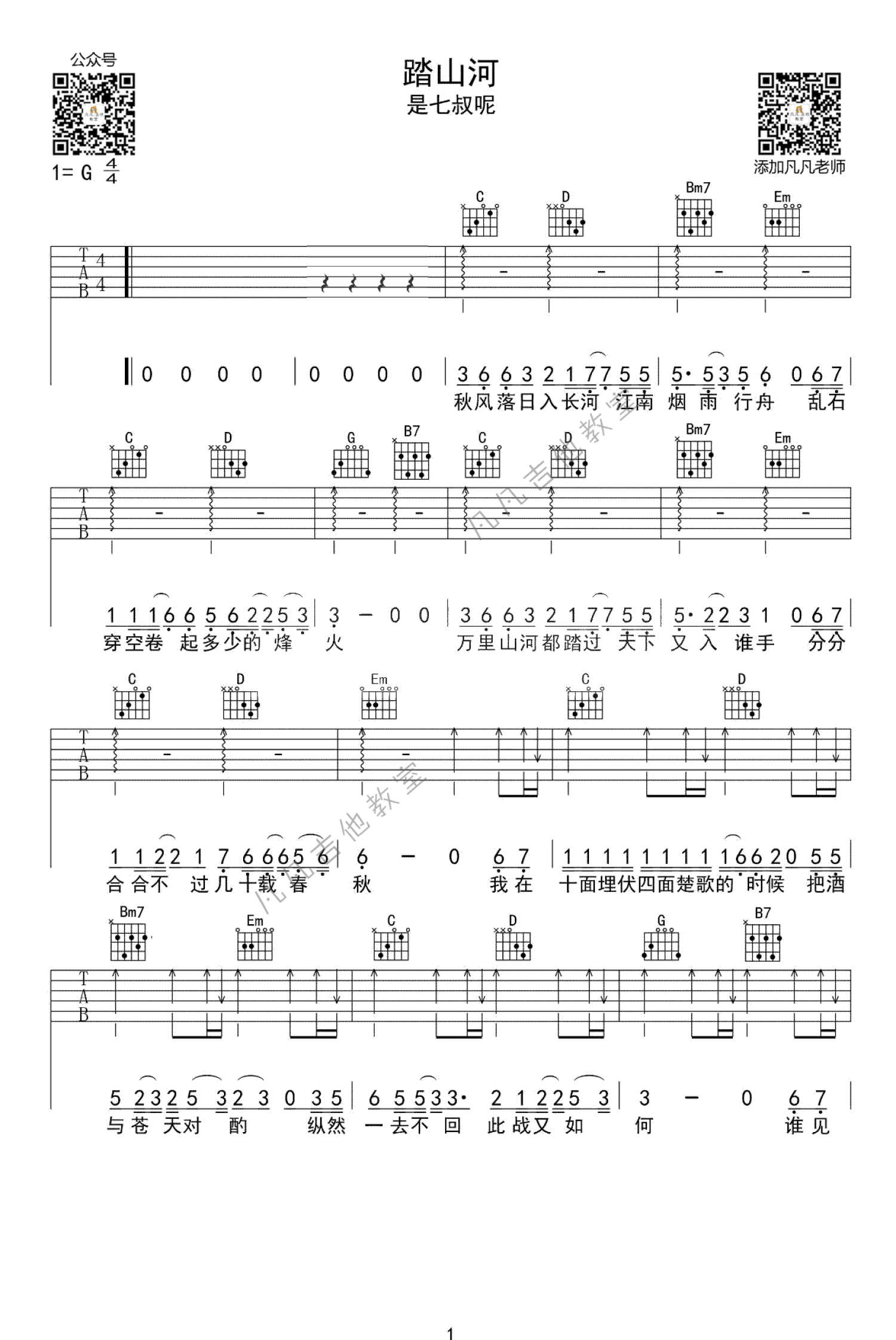 踏山河吉他谱 - 是七叔呢 - G调吉他弹唱谱 - 简单版