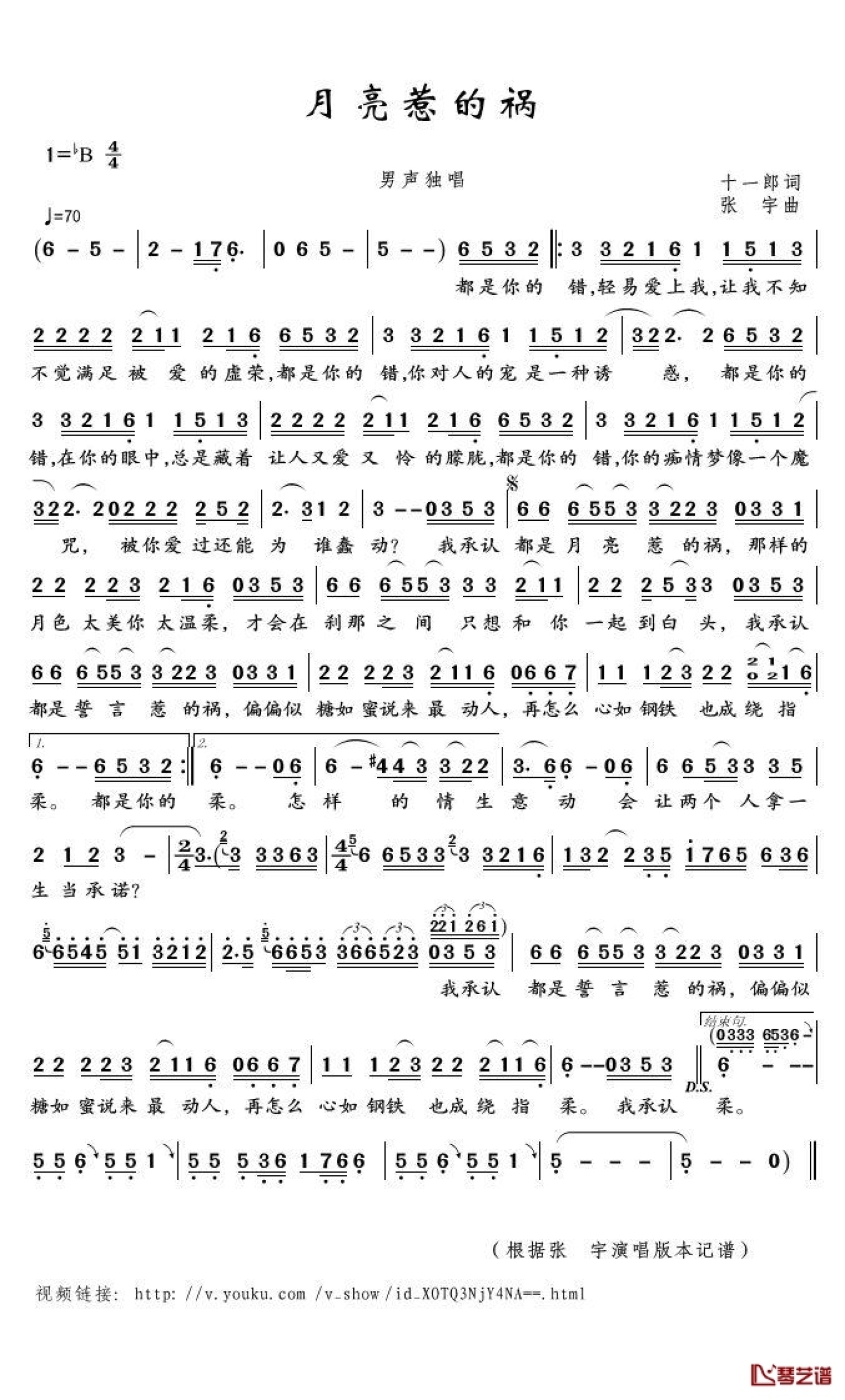 曲谱介绍: 张宇《月亮惹的祸》歌词_简谱
