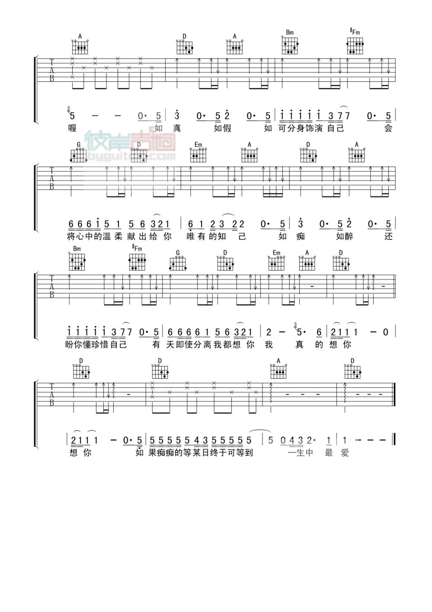 当前位置:琴谱网>吉他弹唱>一生中最爱