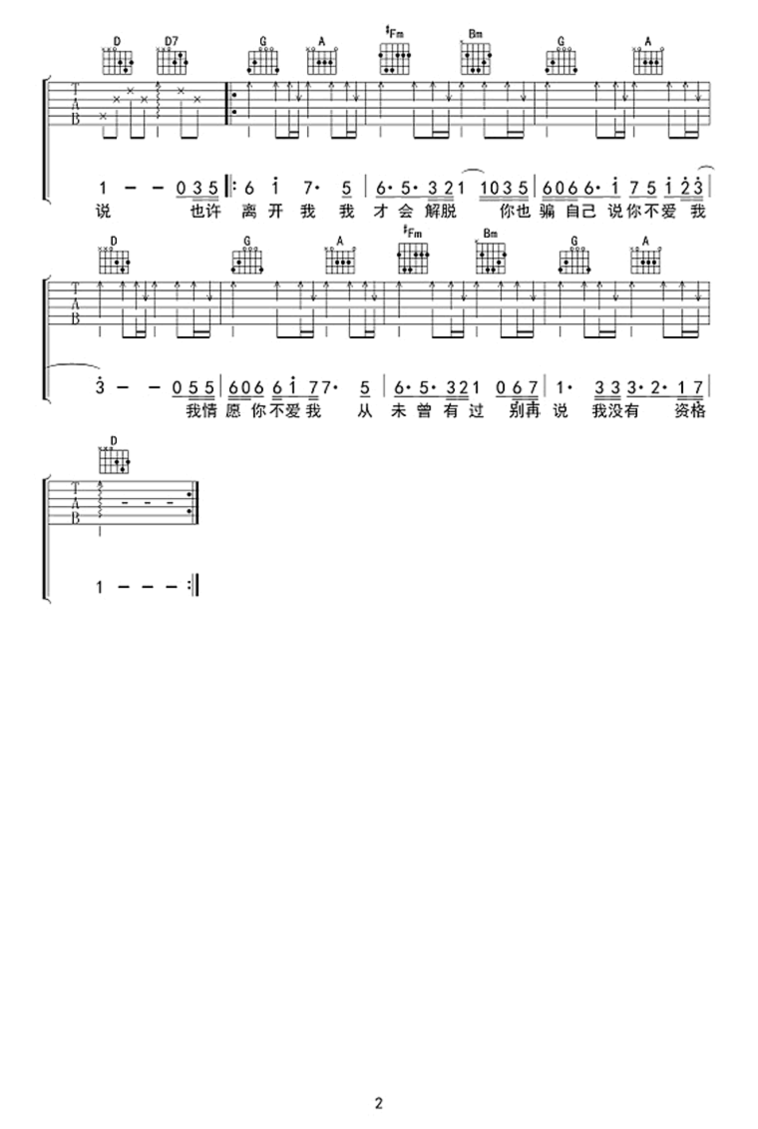 情愿你不爱我吉他谱 - 时间胶囊乐队 - D调吉他弹唱谱