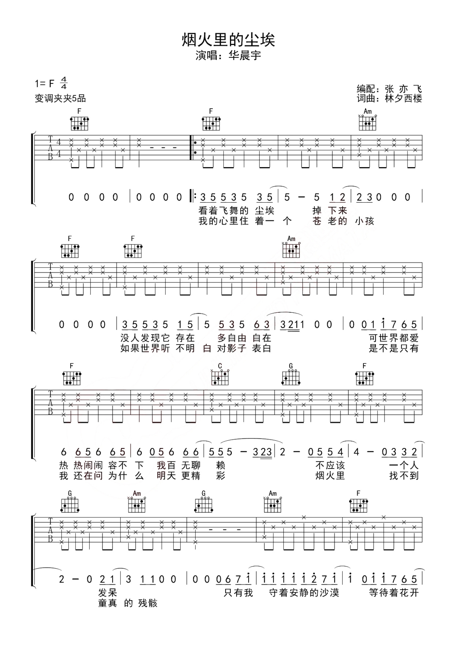 曲谱介绍: 华晨宇《烟火里的尘埃》吉他谱_C调吉他弹唱谱
