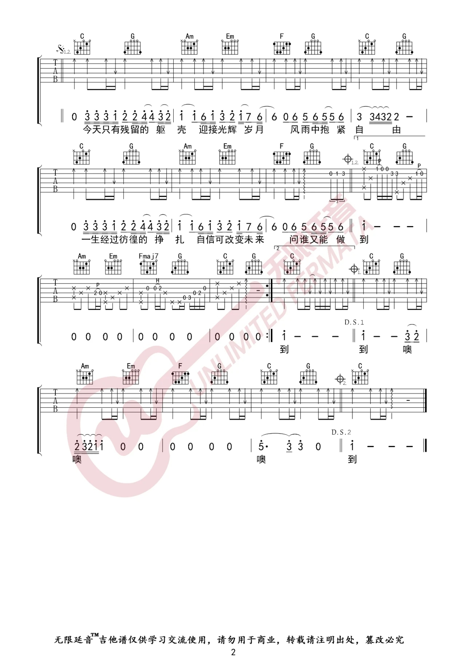 吉他弹唱C调来源:无限延音743 浏览2021-03-25 09:59发布图谱共2页