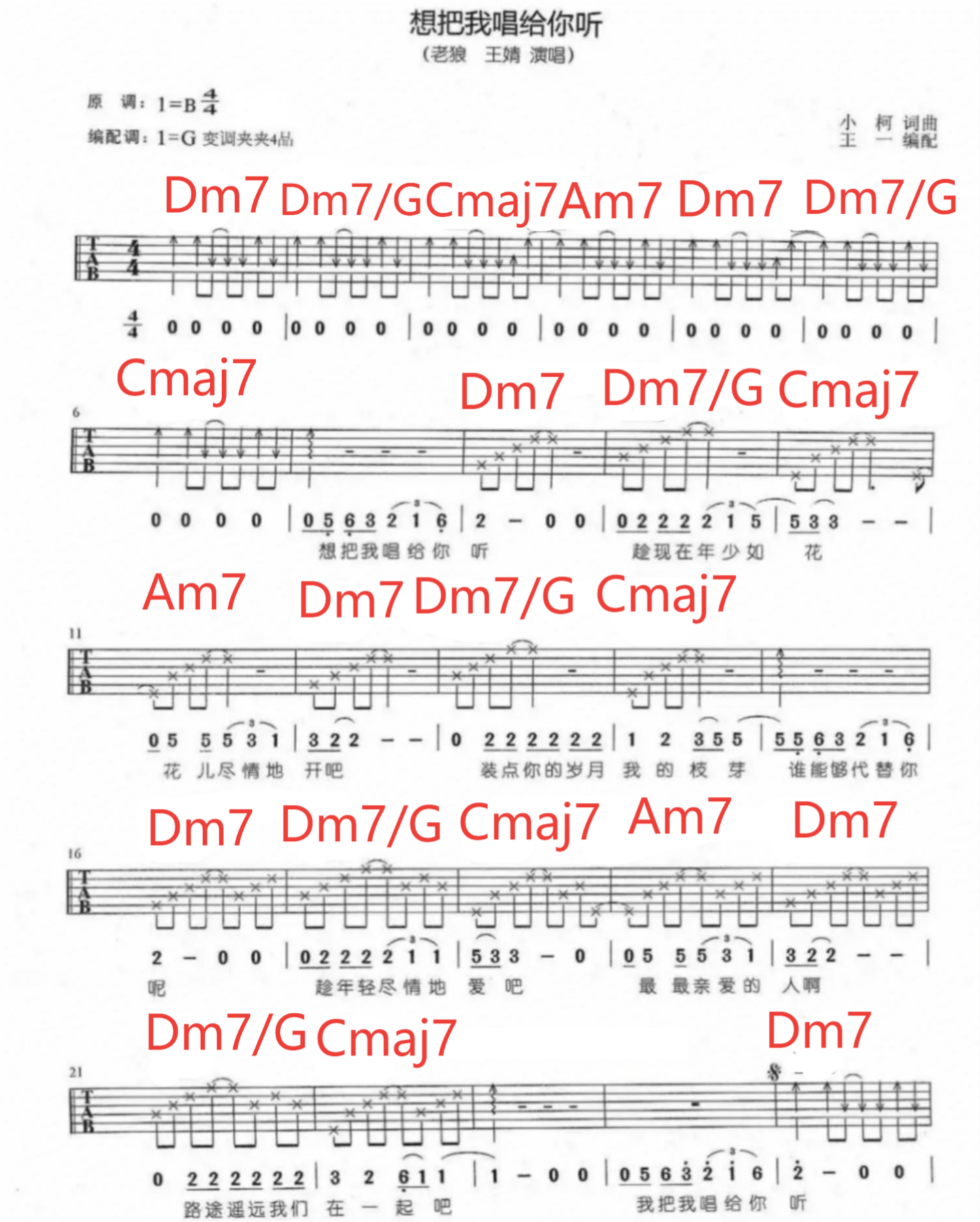 曲谱介绍: 老狼《想把我唱给你听》吉他谱_吉他弹唱谱