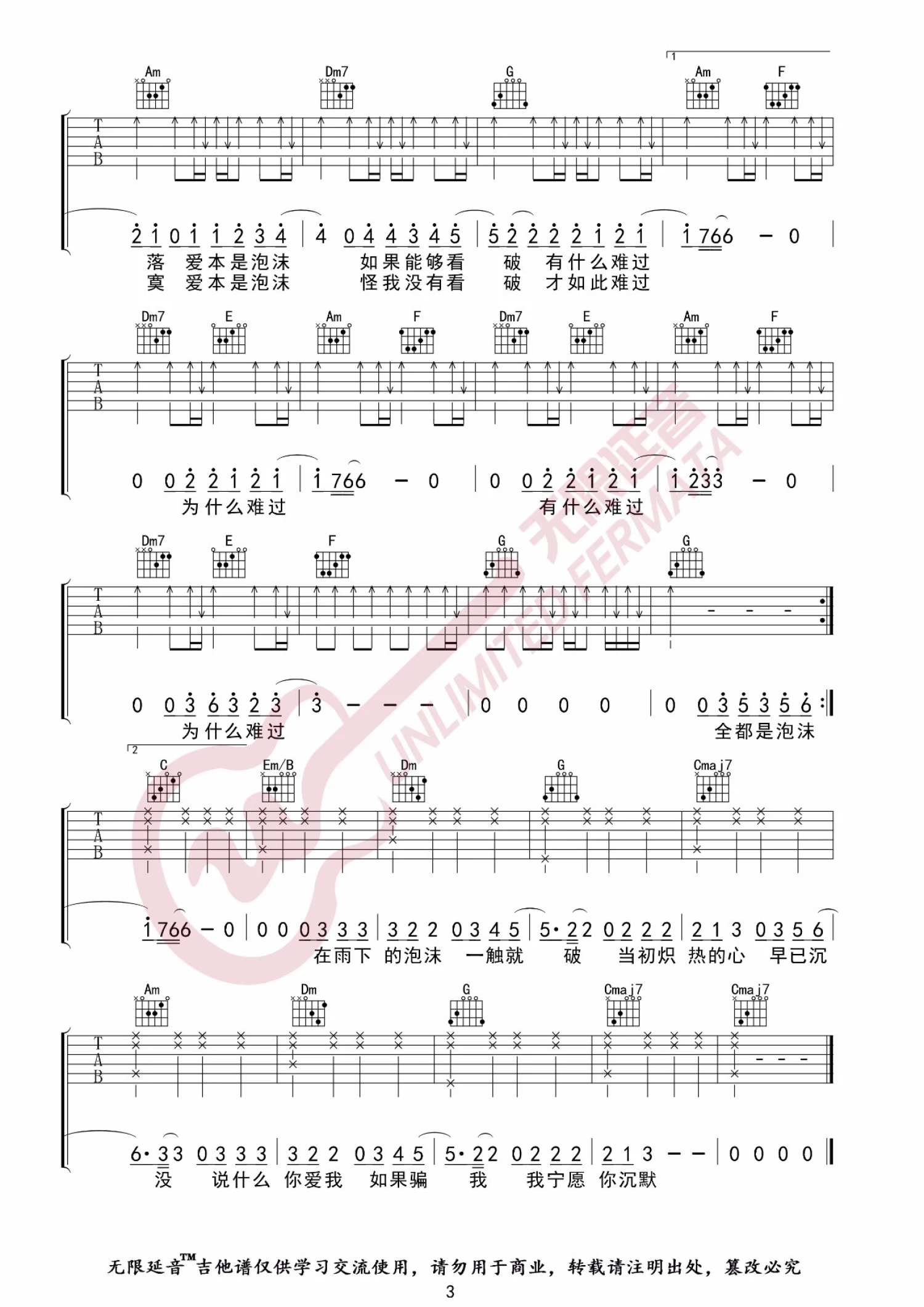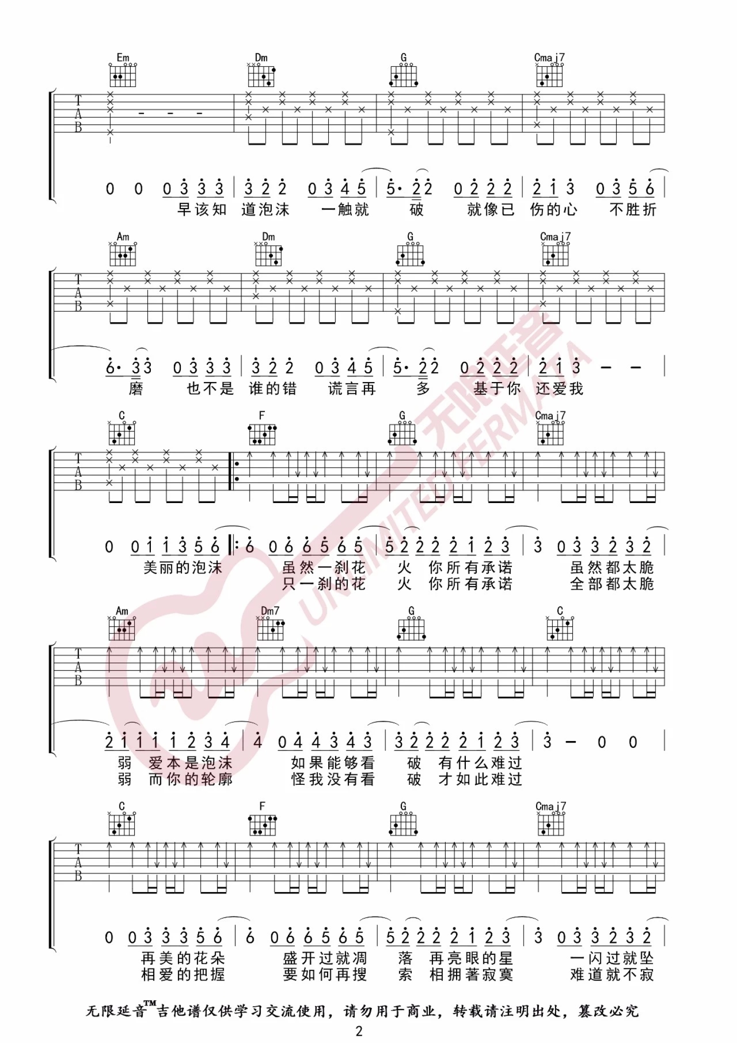 当前位置:琴谱网>吉他弹唱>泡沫