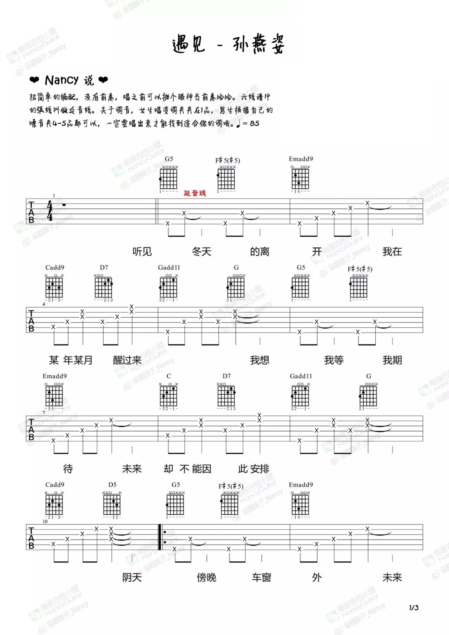 曲谱介绍: 孙燕姿《遇见》吉他谱_G调吉他弹唱谱