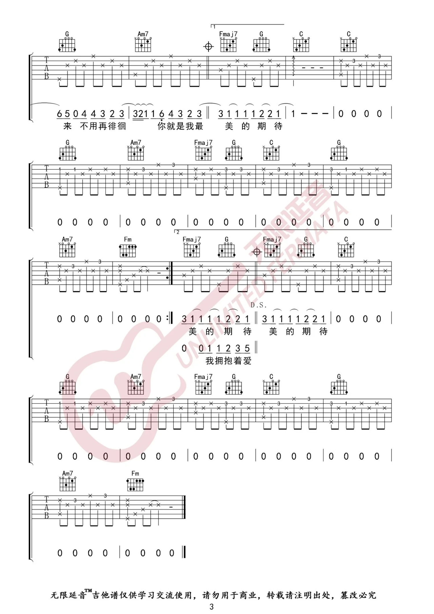 当前位置:琴谱网>吉他弹唱>最美的期待