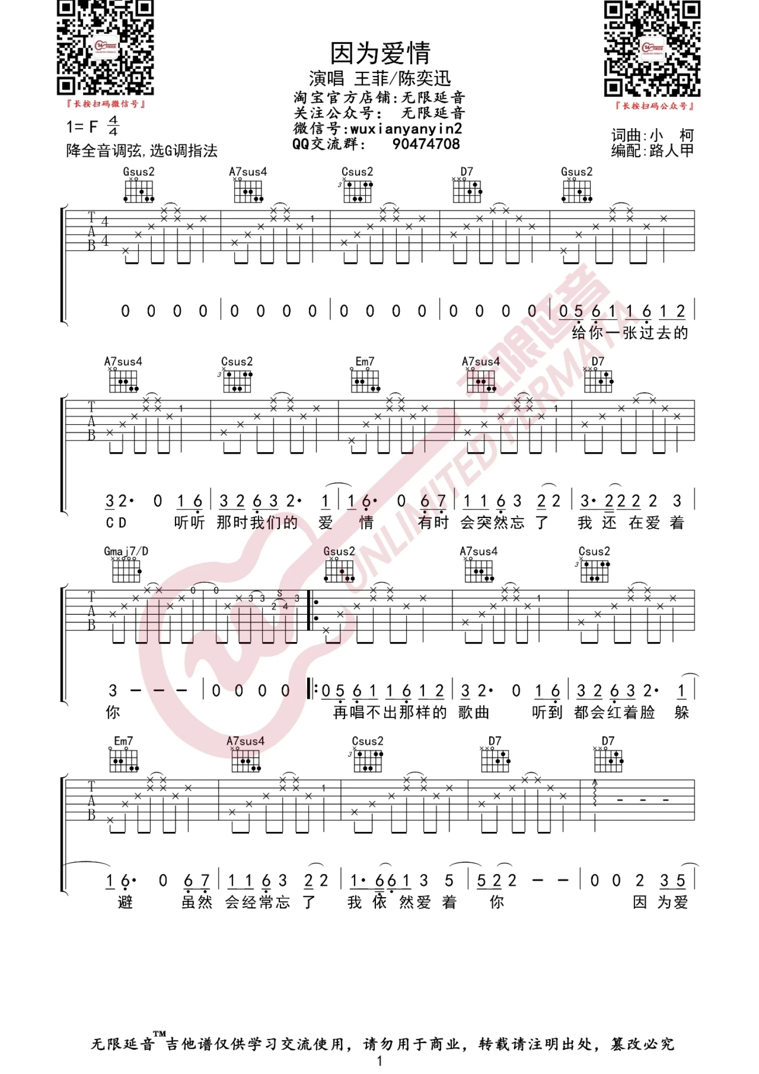 曲谱介绍: 王菲/陈奕迅《因为爱情》吉他谱_G调吉他弹唱谱