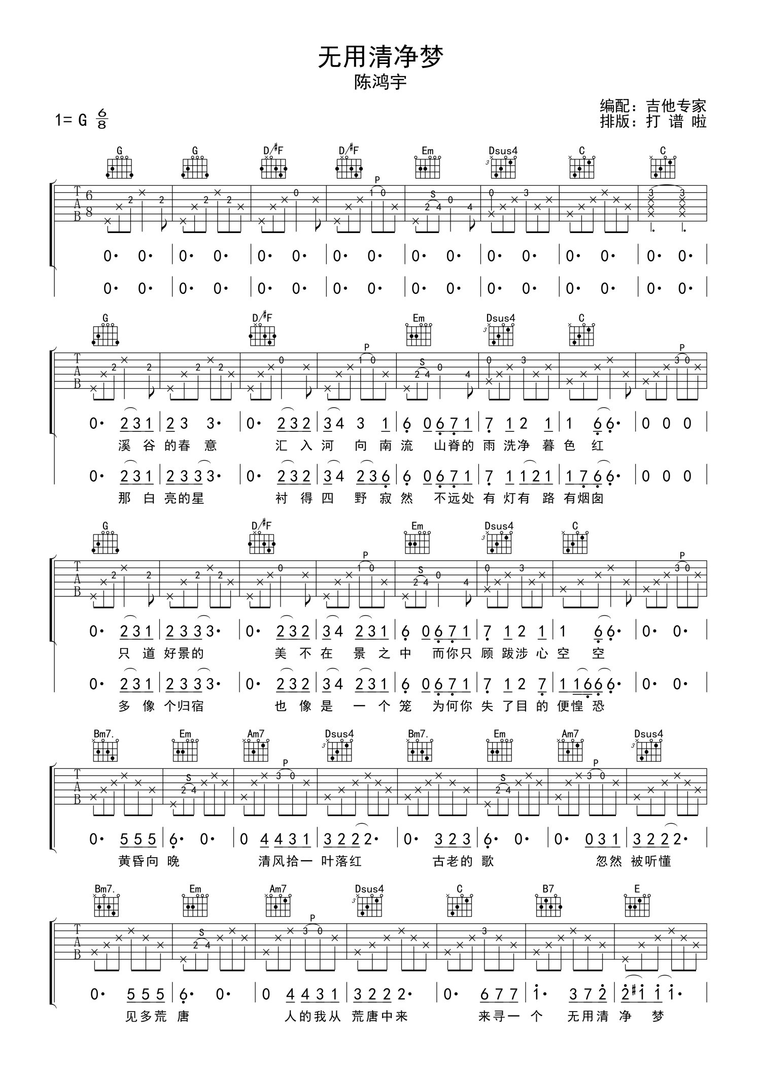 • 无用清净梦吉他谱 - 陈鸿宇 - G调吉他弹唱谱第1张