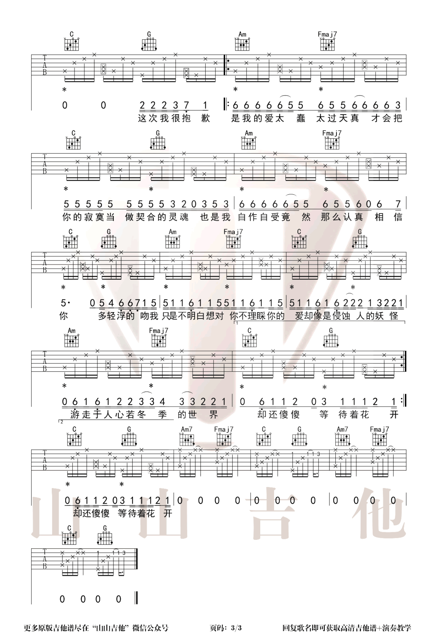 吉他弹唱C调来源:山山吉他898 浏览2021-03-30 18:52发布图谱共3页