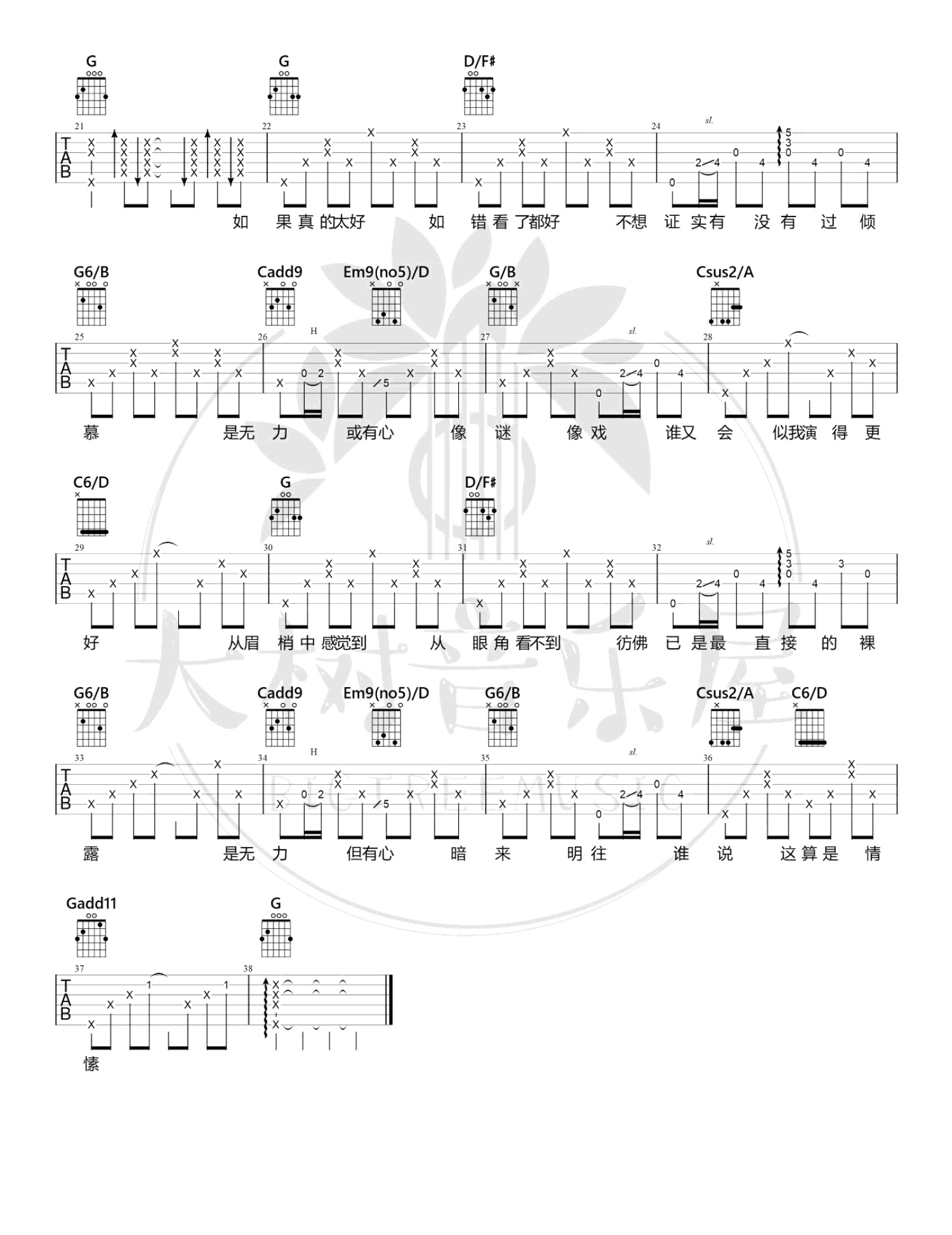 吉他弹唱G调来源:大树音乐屋2199 浏览2021-06-03 12:38发布图谱共3页