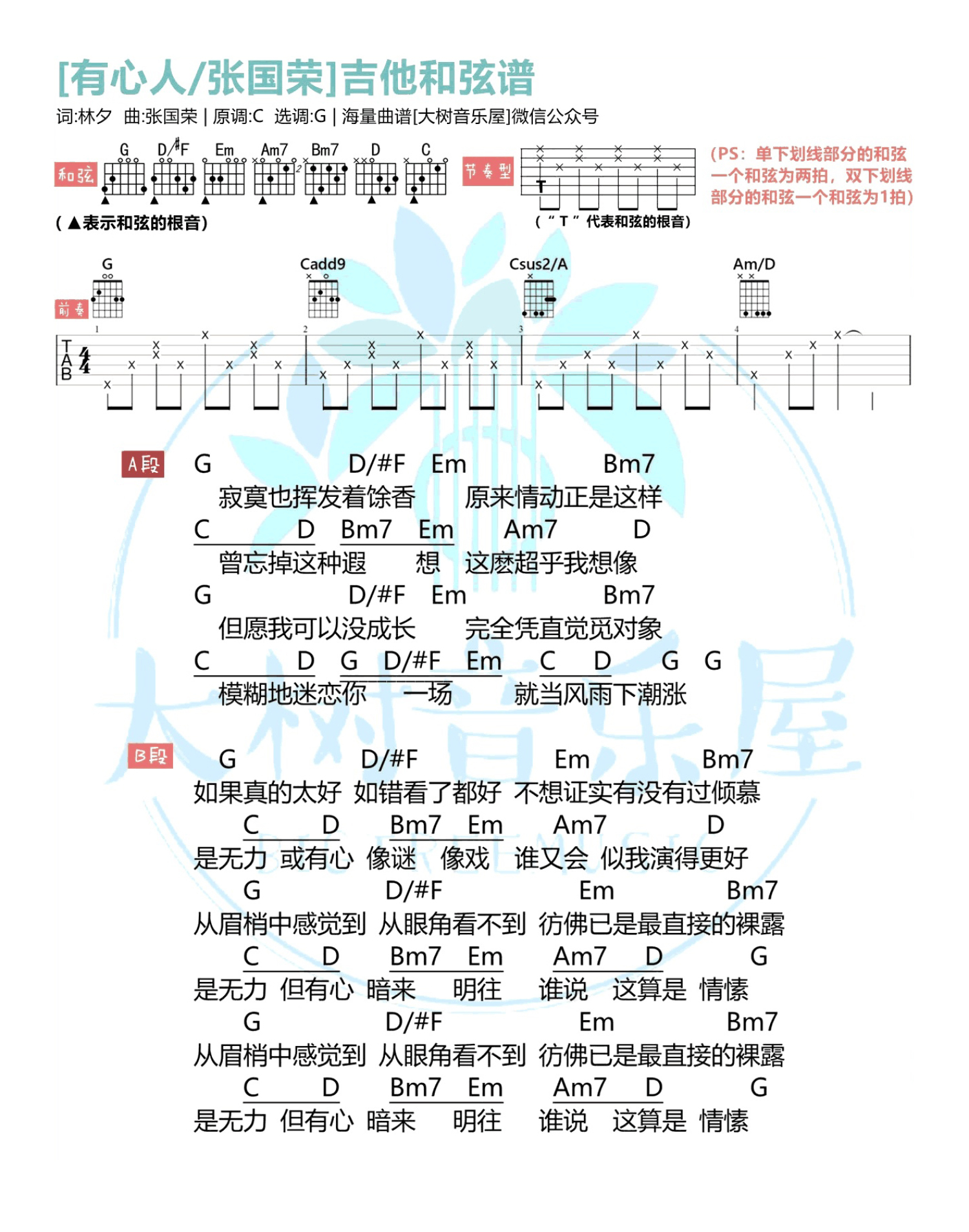 有心人吉他谱 - 张国荣 - G调吉他弹唱谱