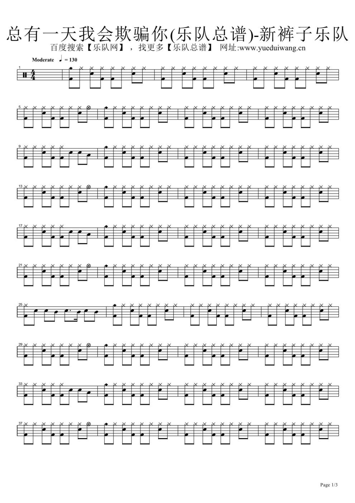 曲谱介绍: 总有一天我会欺骗你(架子鼓谱)-新裤子乐队