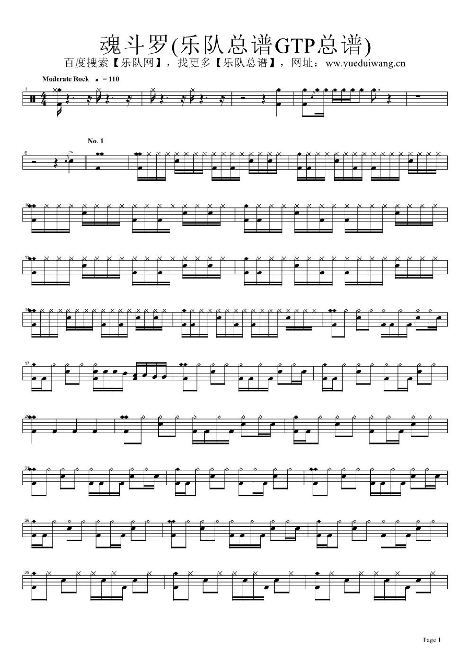 曲谱介绍: 魂斗罗(架子鼓谱)