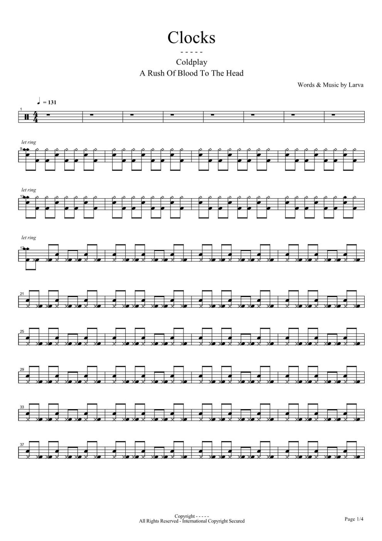 曲谱介绍: Clocksk(架子鼓谱)-Coldplay