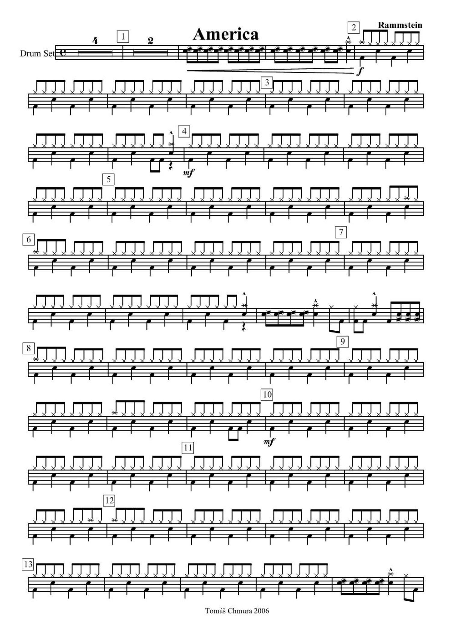 America鼓谱 - Rammstein - 架子鼓谱