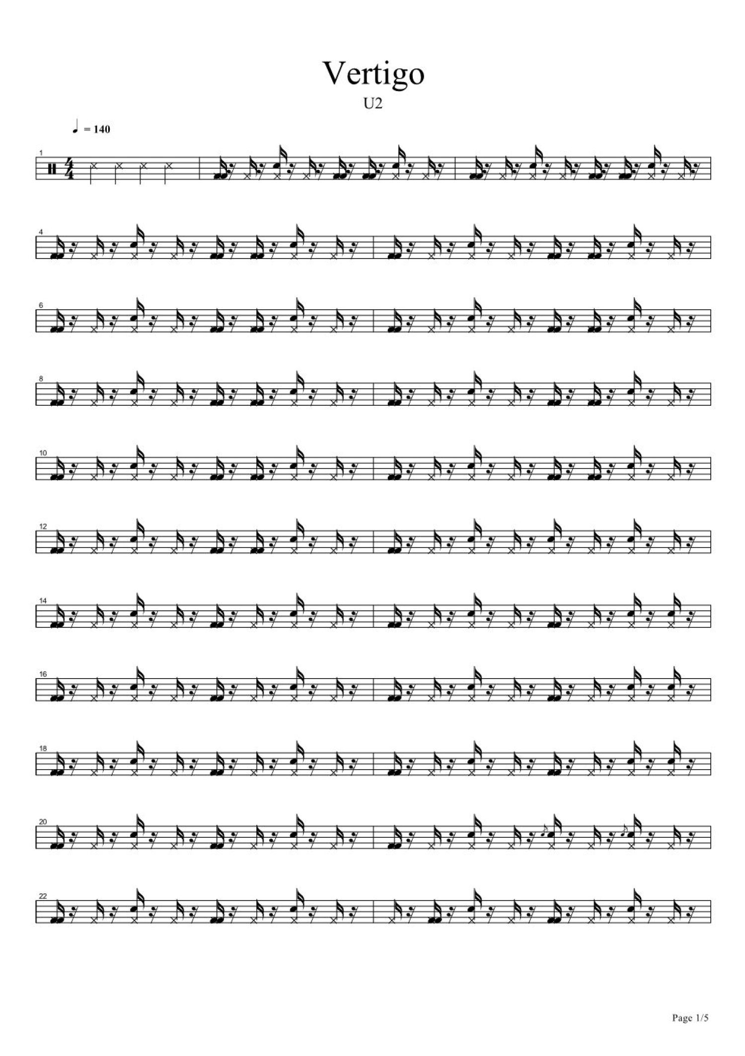 Vertigok鼓谱 - U2 - 架子鼓谱