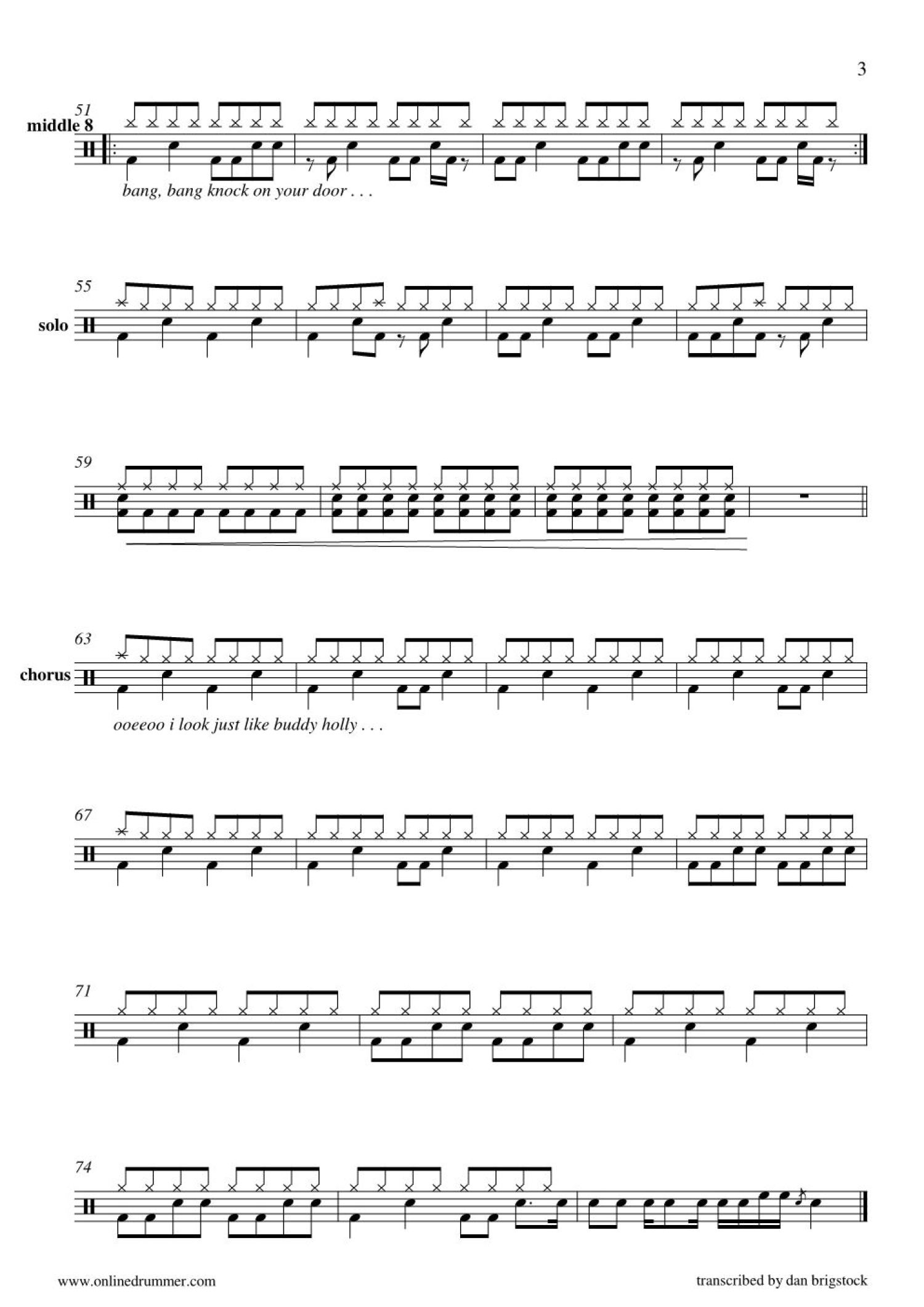 曲谱介绍: BuddyHollyk(架子鼓谱)-Weezer