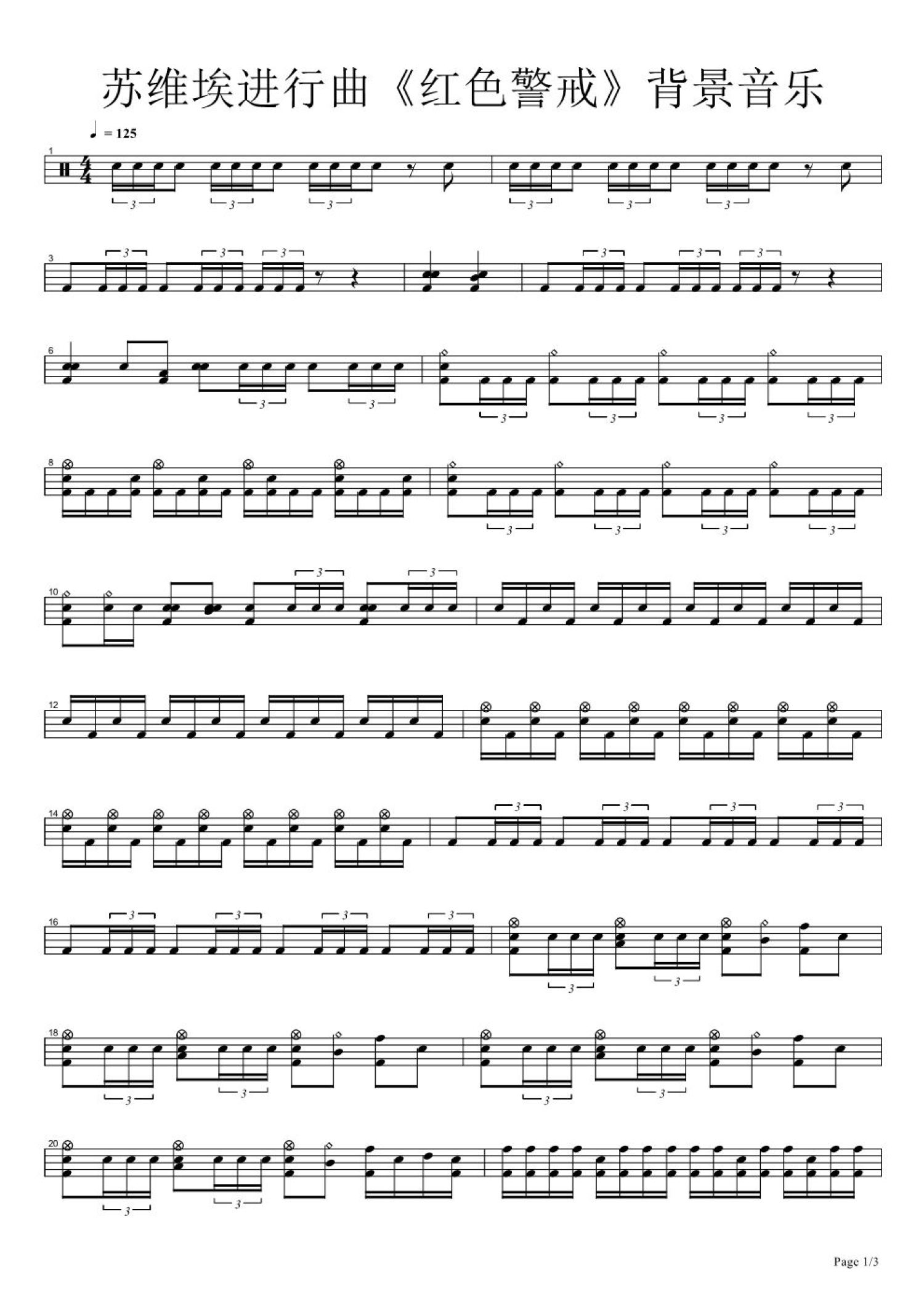曲谱介绍: 苏维埃进行曲(架子鼓谱)-游戏《红色警戒》背景音乐