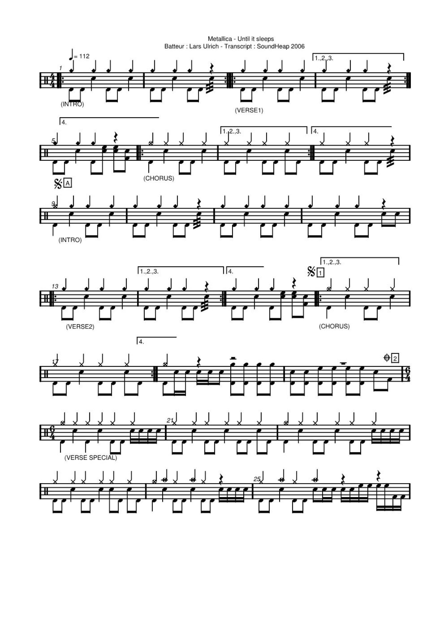 Until It Sleeps鼓谱 - Metallica - 架子鼓谱