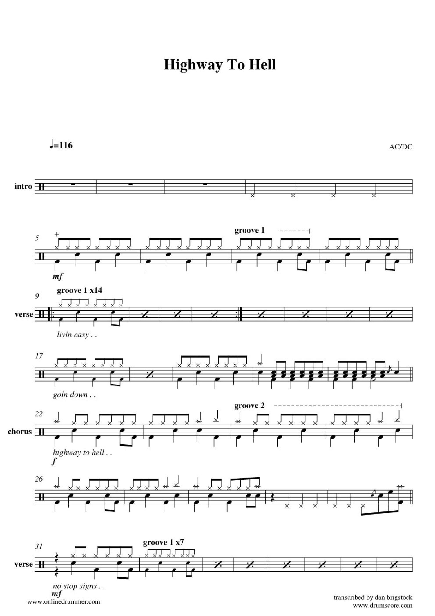 Highway To Hell鼓谱 - AcDc - 架子鼓谱