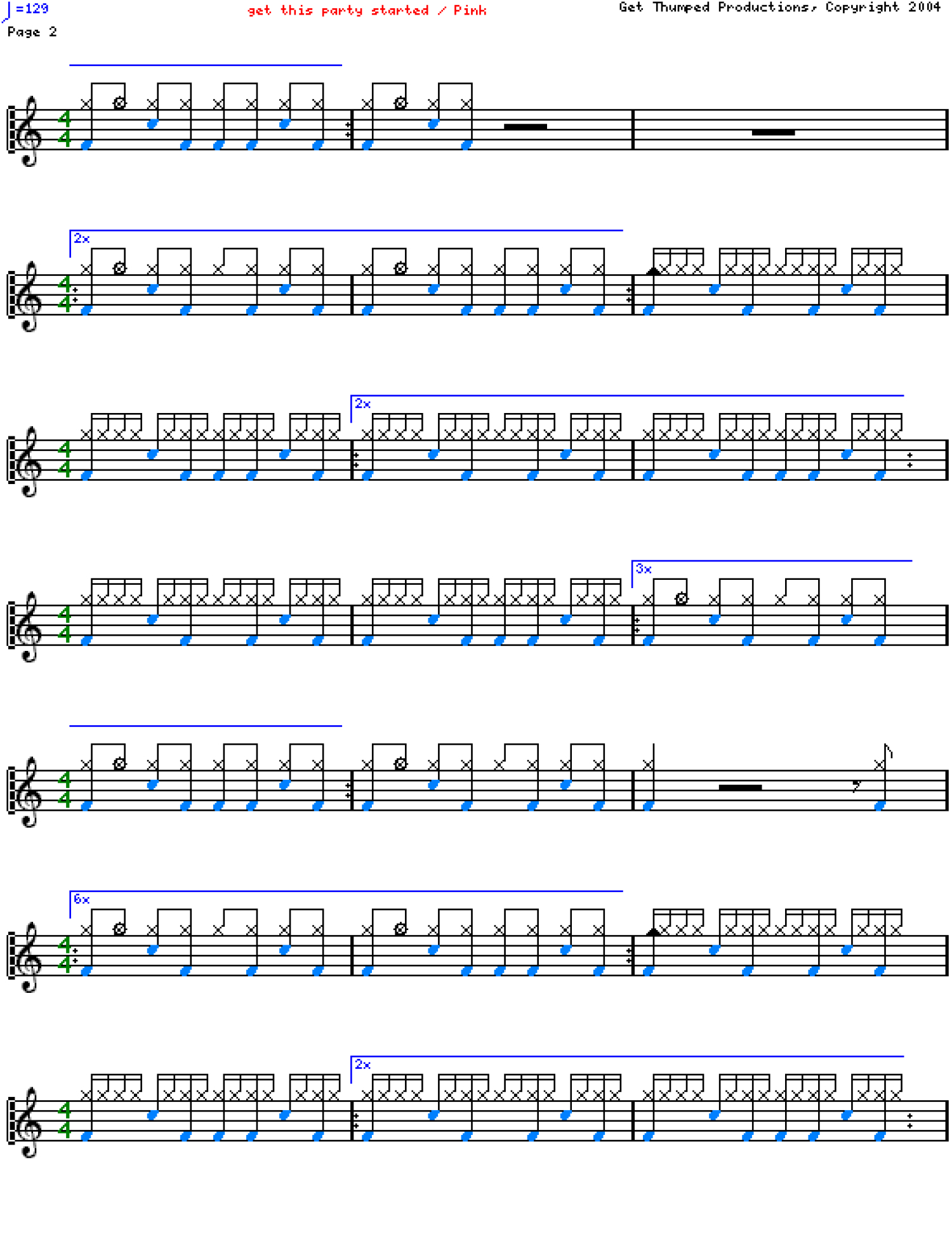 曲谱介绍: Getthispartystarted(架子鼓谱)-Pink