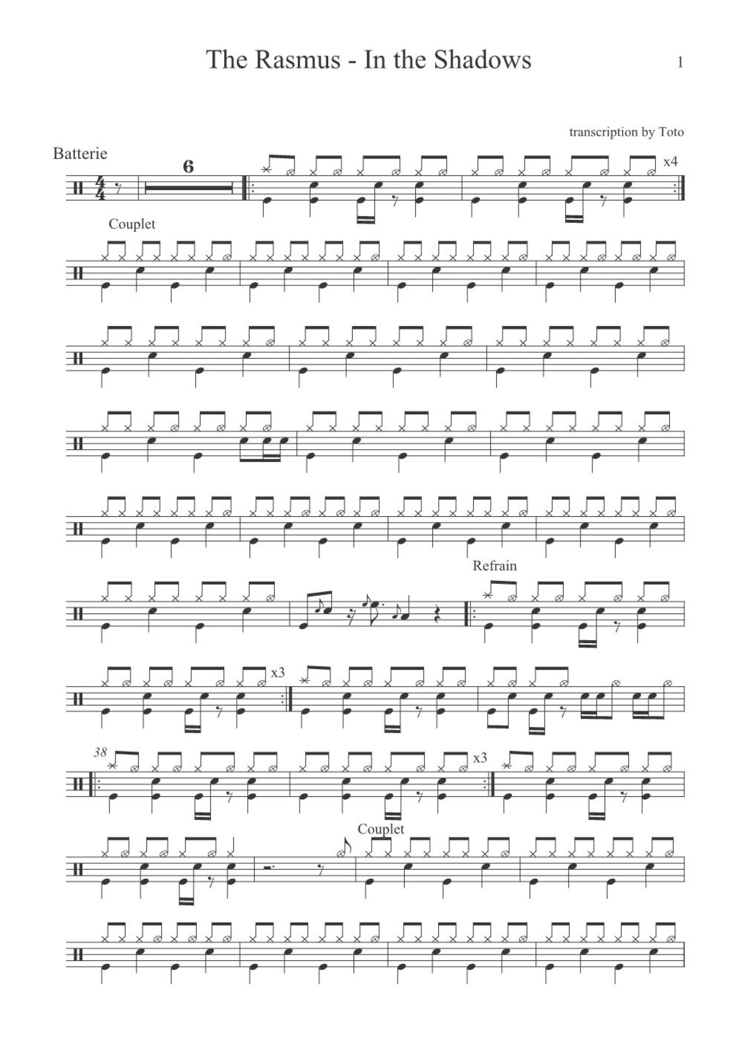 曲谱介绍: Intheshadows(架子鼓谱)-Rasmus