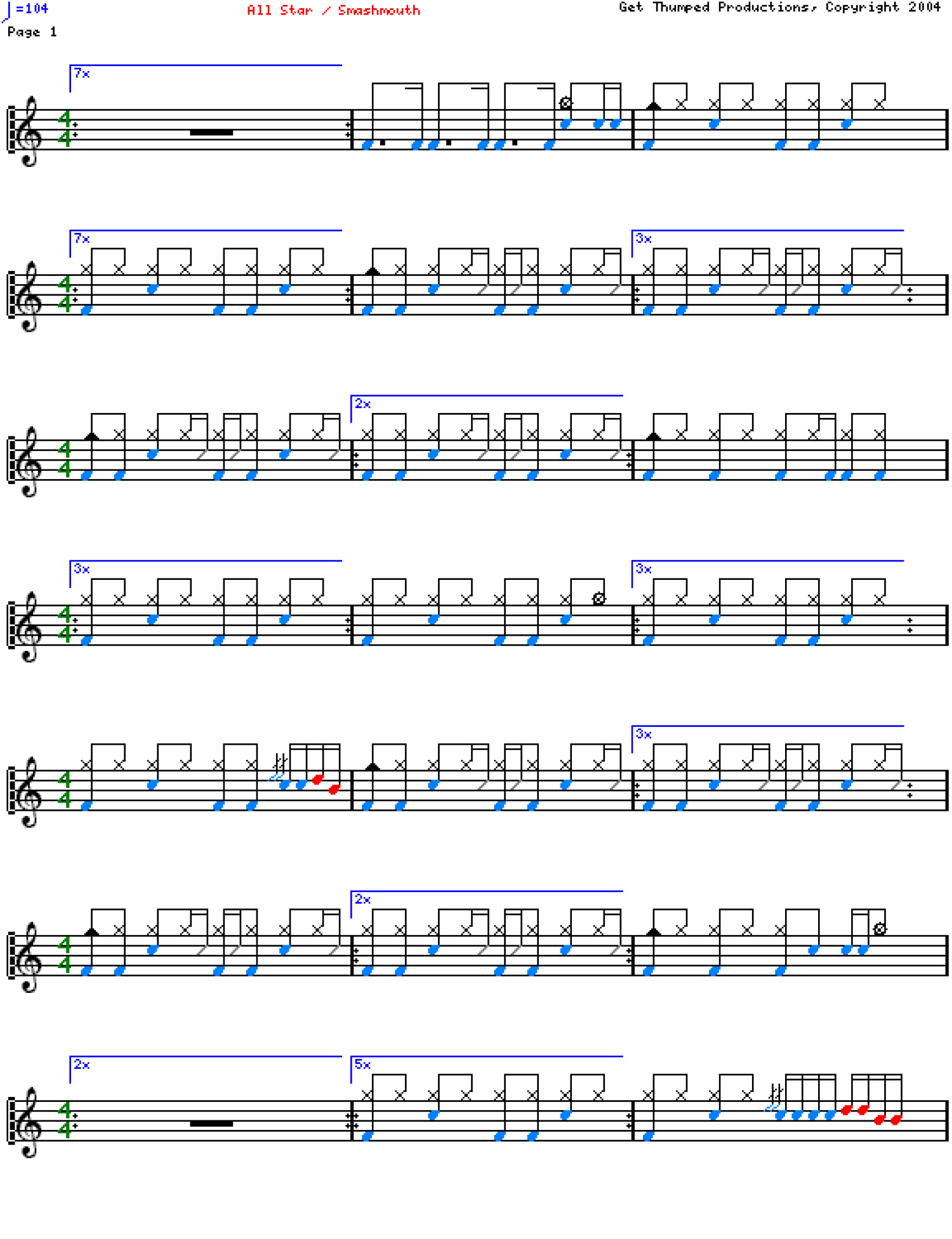 All star鼓谱 - Smash Mouth - 架子鼓谱