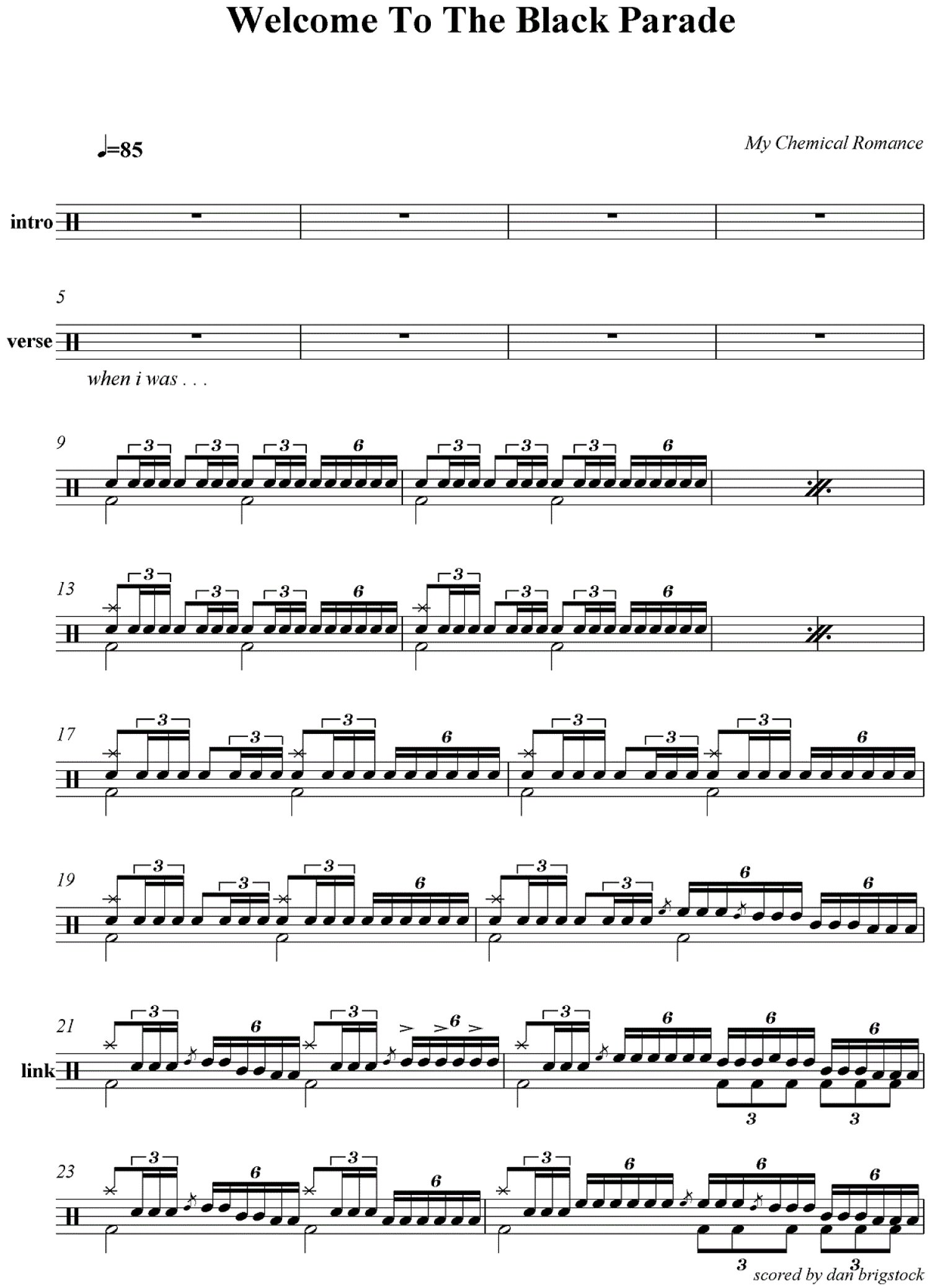 曲谱介绍: Welcometotheblackparade(架子鼓谱)-MyChemicalRomance