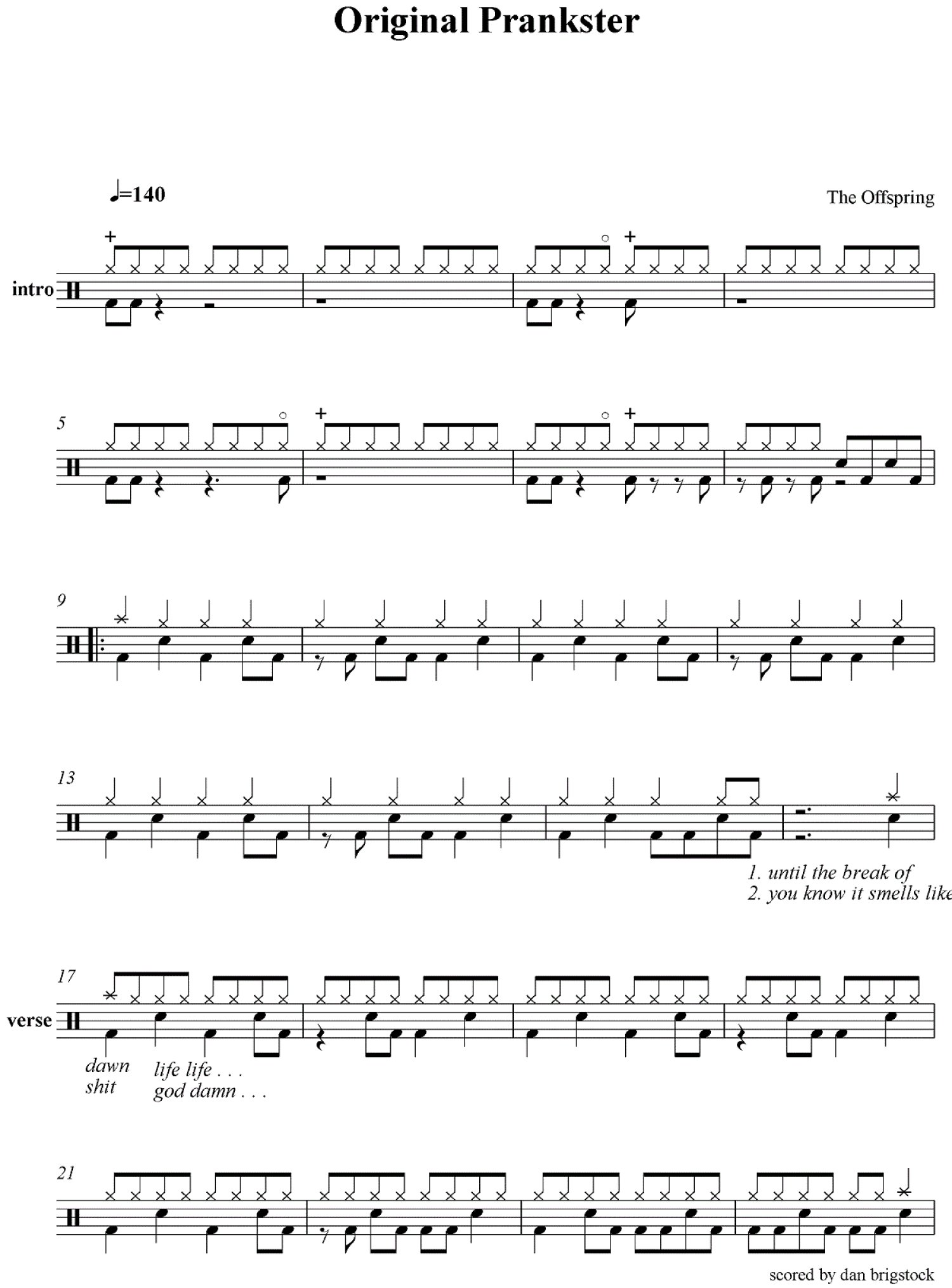 Original prankster鼓谱 - Offspring - 架子鼓谱