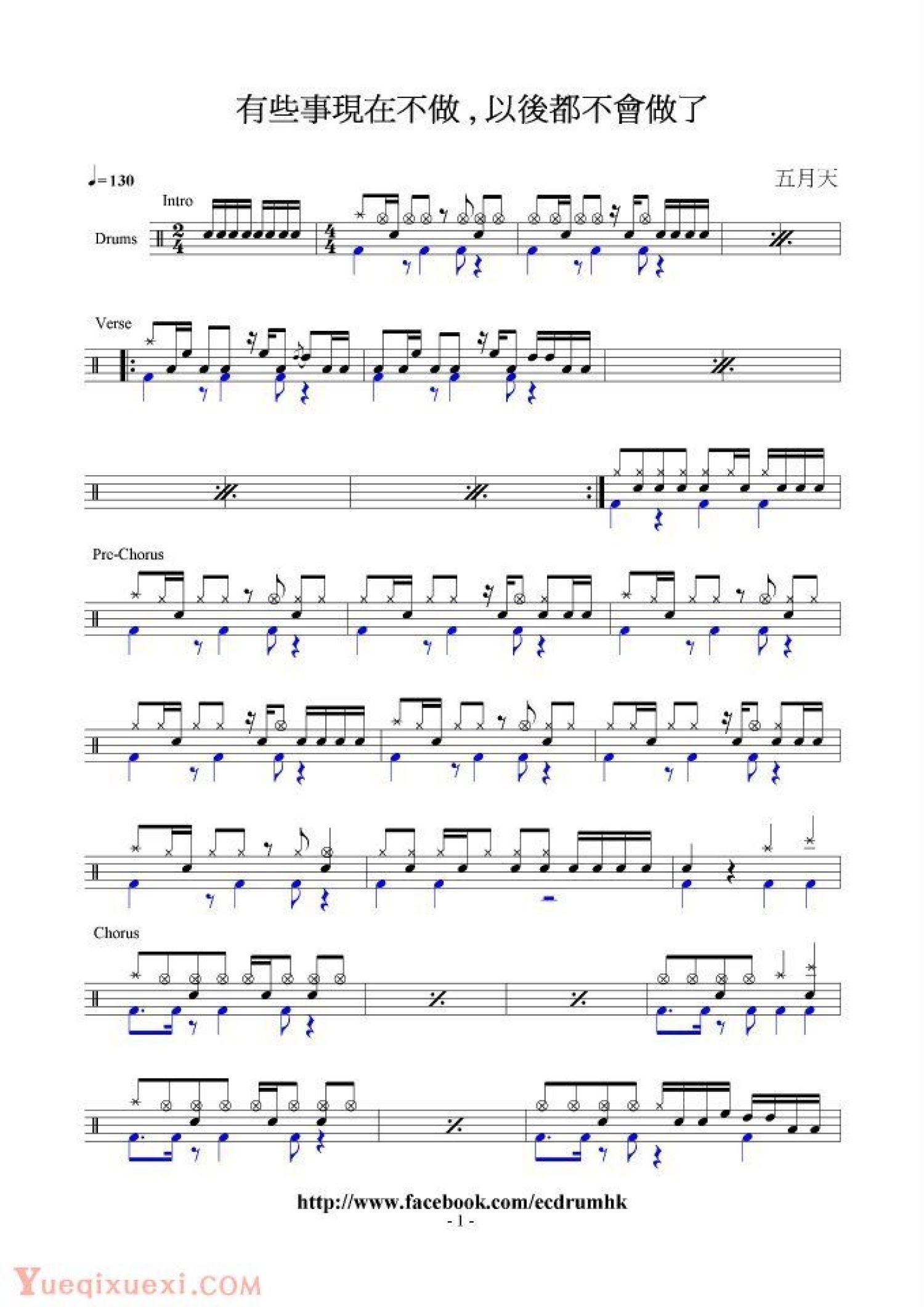 有些事现在不做, 以后都不会做了鼓谱 - 五月天 - 架子鼓谱