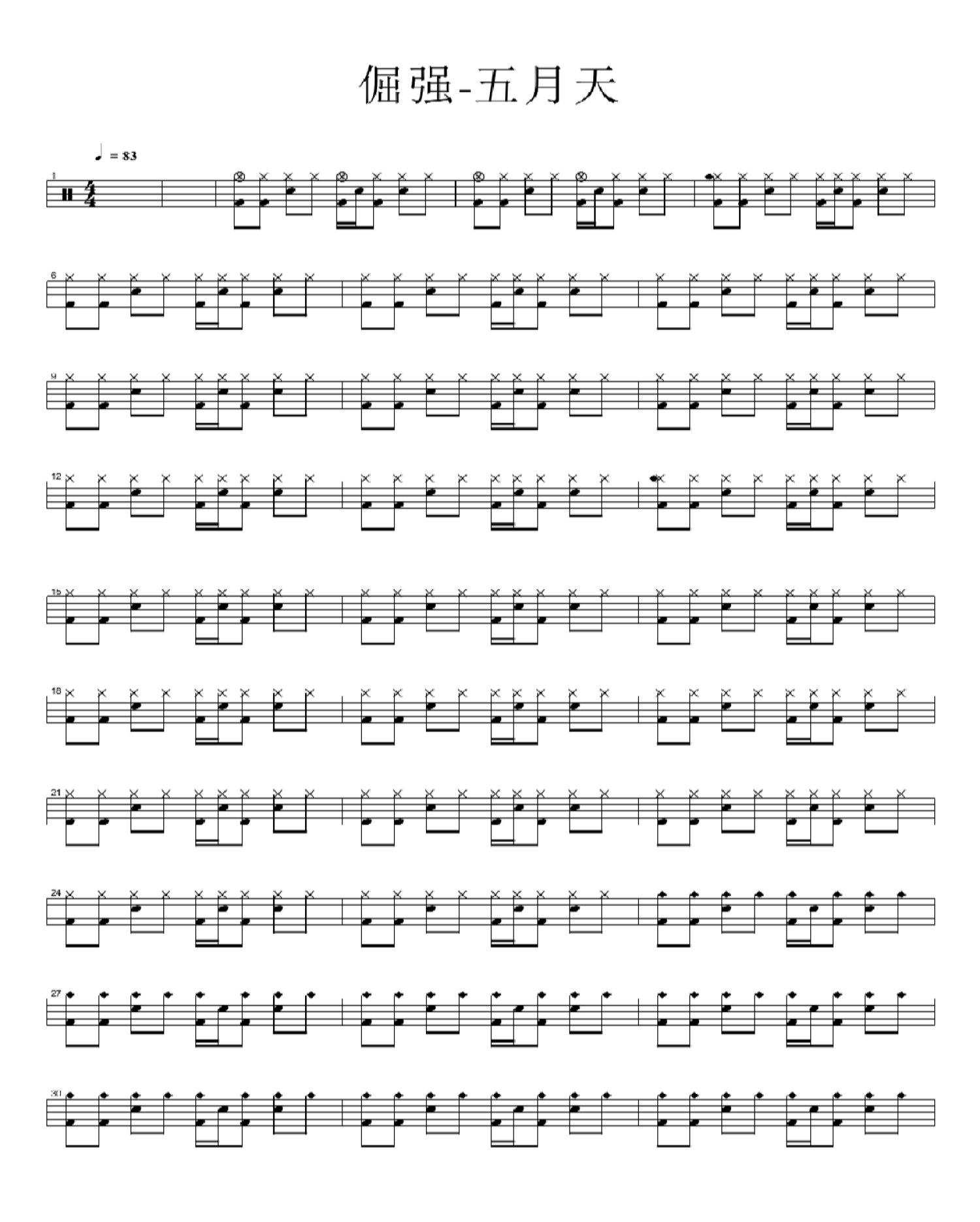 倔强鼓谱 - 五月天 - 架子鼓谱