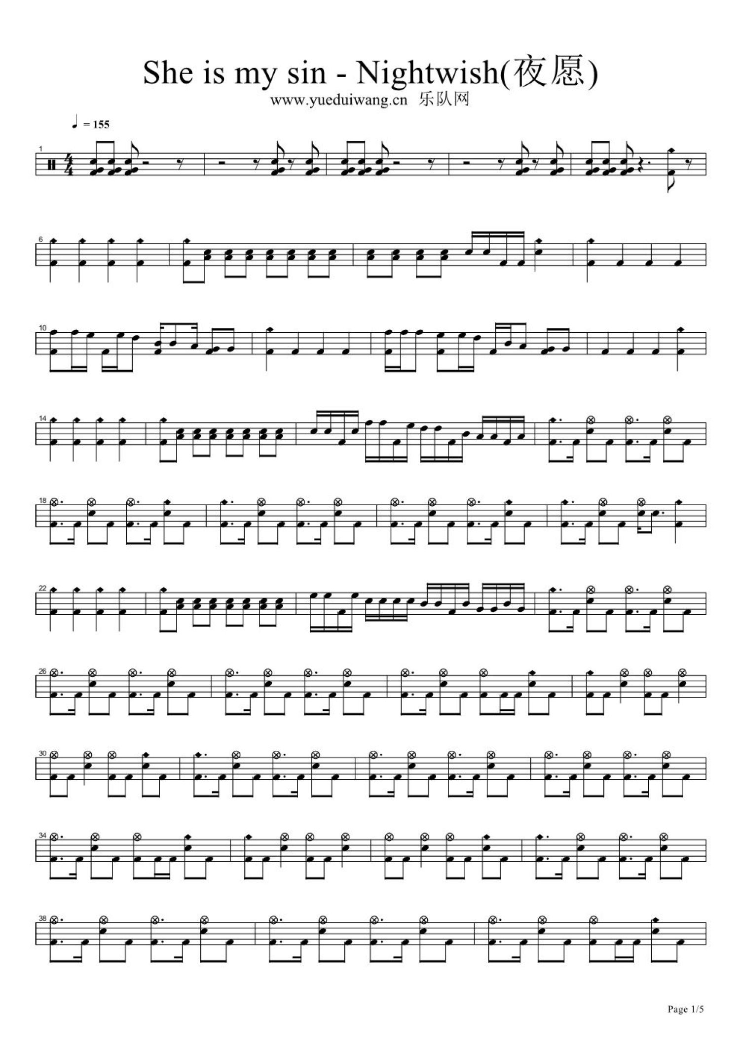 曲谱介绍: SheIsMySin(架子鼓谱)-Nightwish(夜愿)
