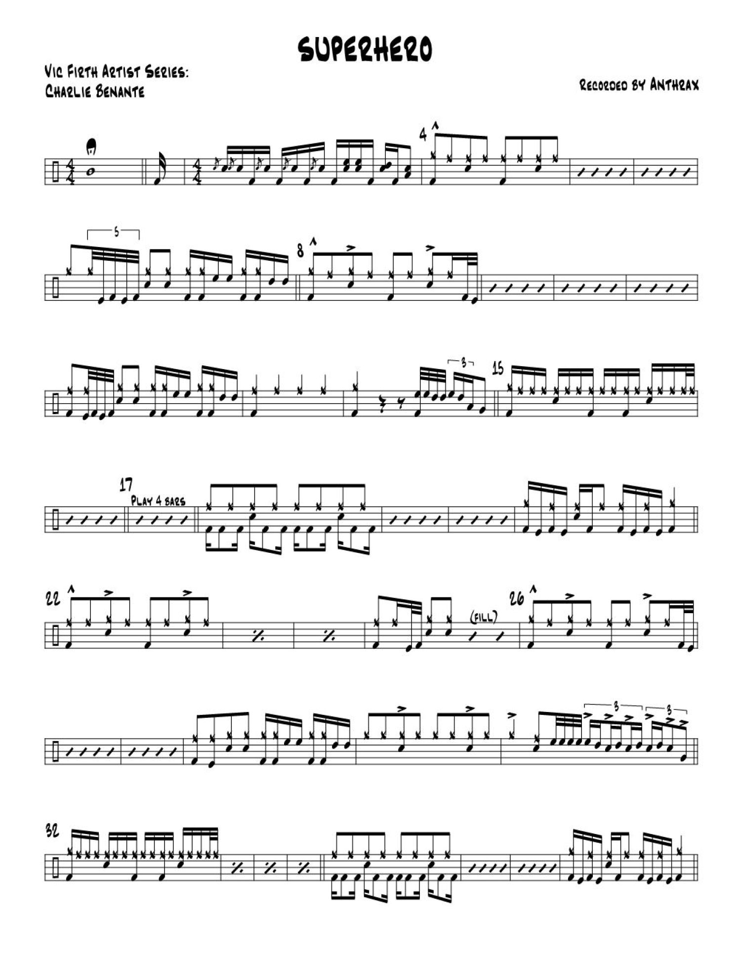 曲谱介绍: superhero【超级英雄】(架子鼓谱)