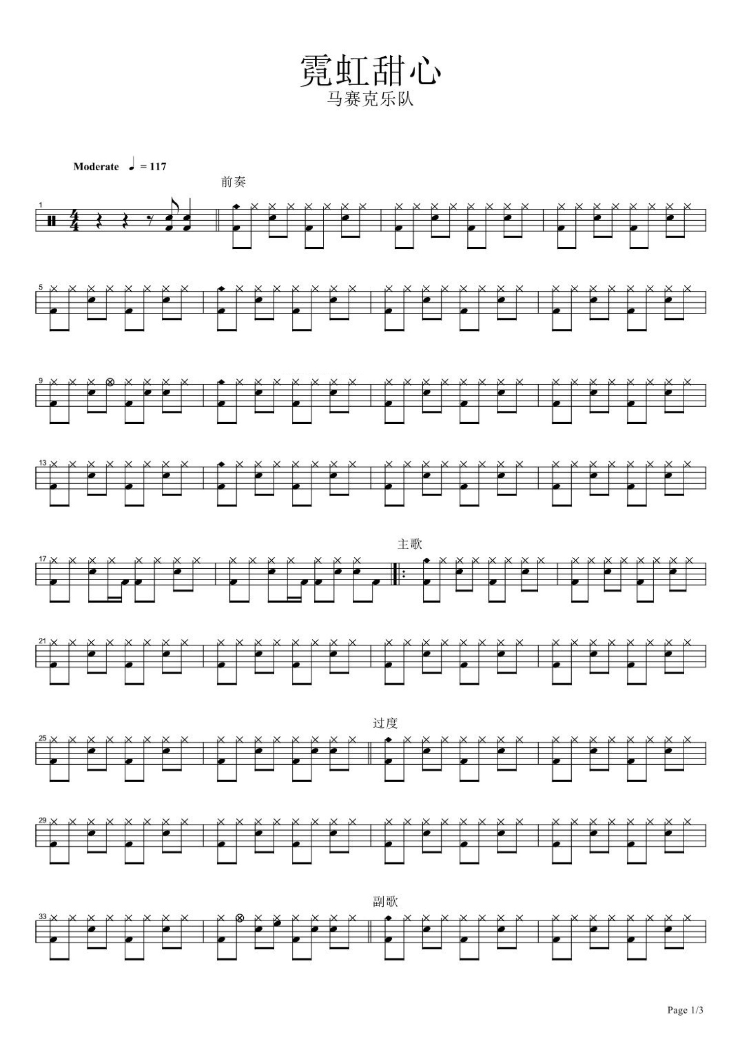 霓虹甜心鼓谱 - 马赛克乐队 - 架子鼓谱