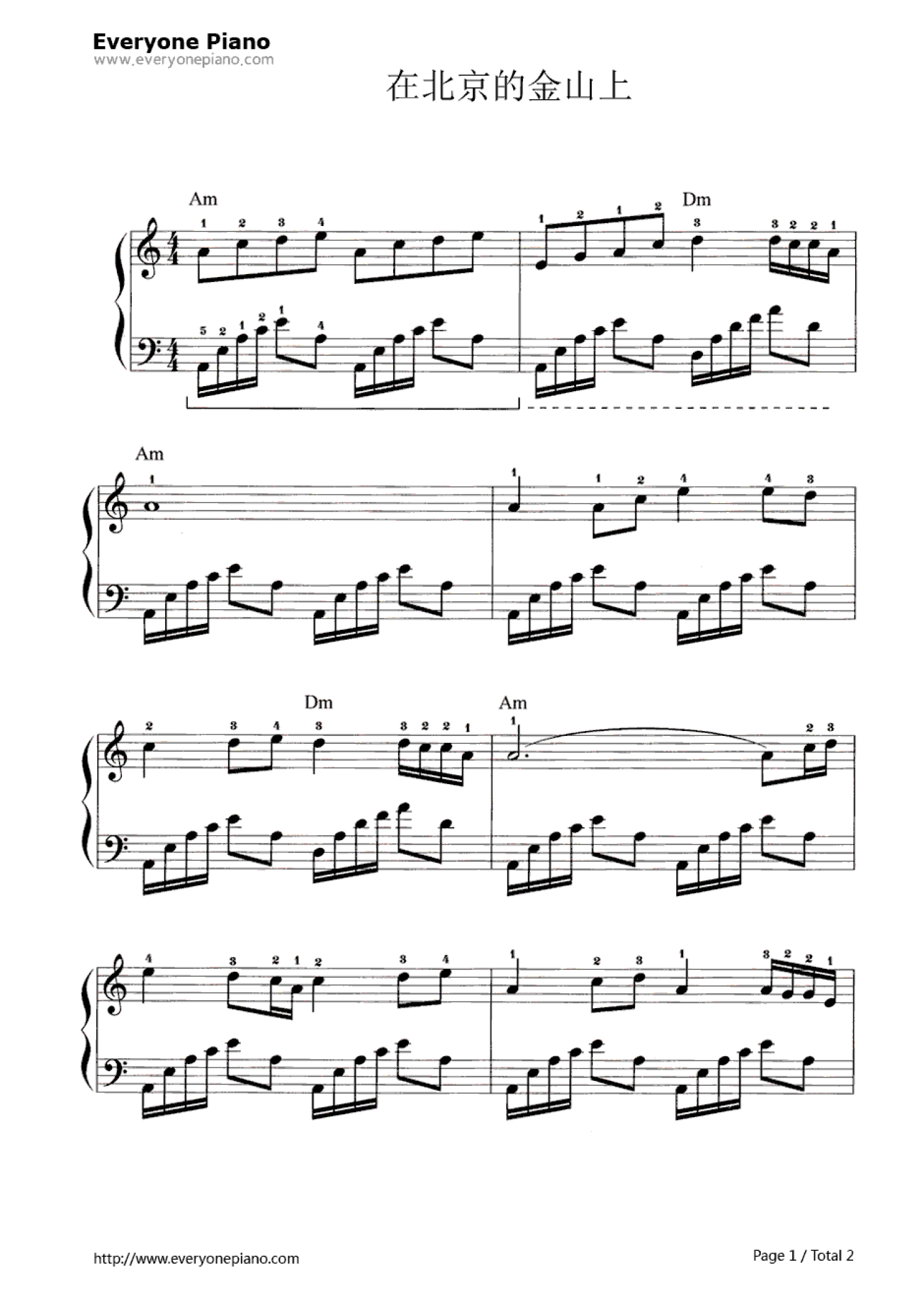 当前位置:琴谱网>钢琴谱>北京的金山上