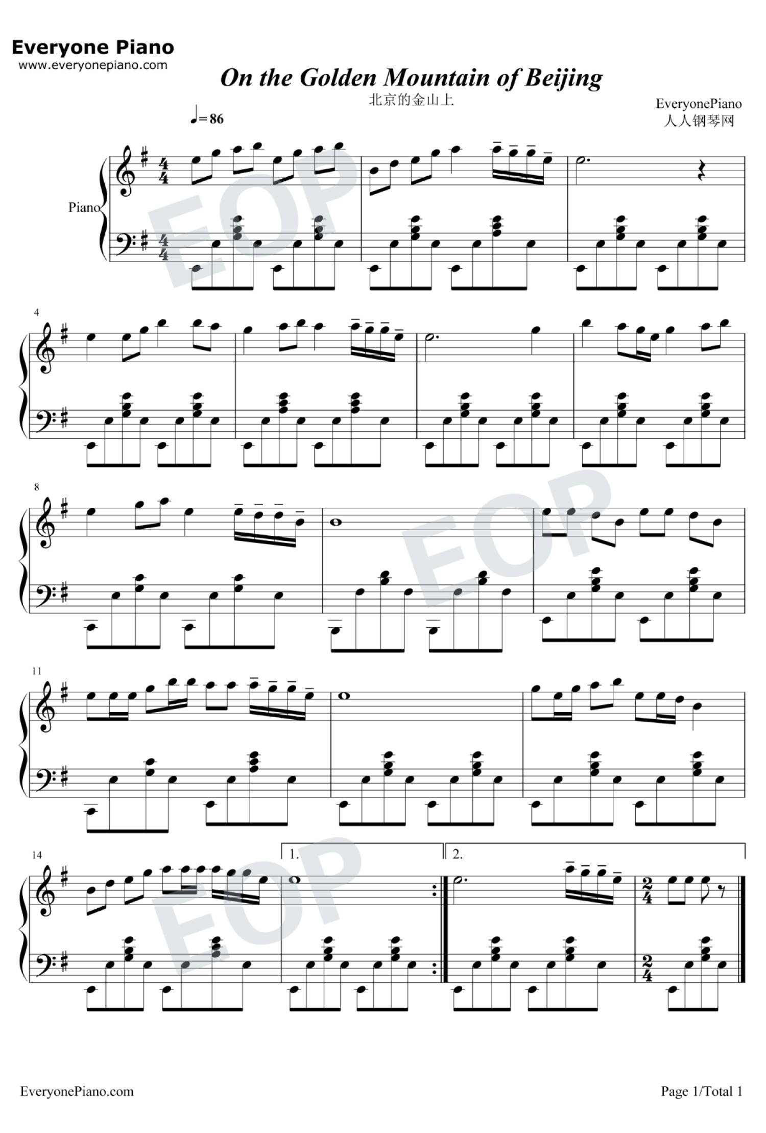 当前位置:琴谱网>钢琴谱>北京的金山上
