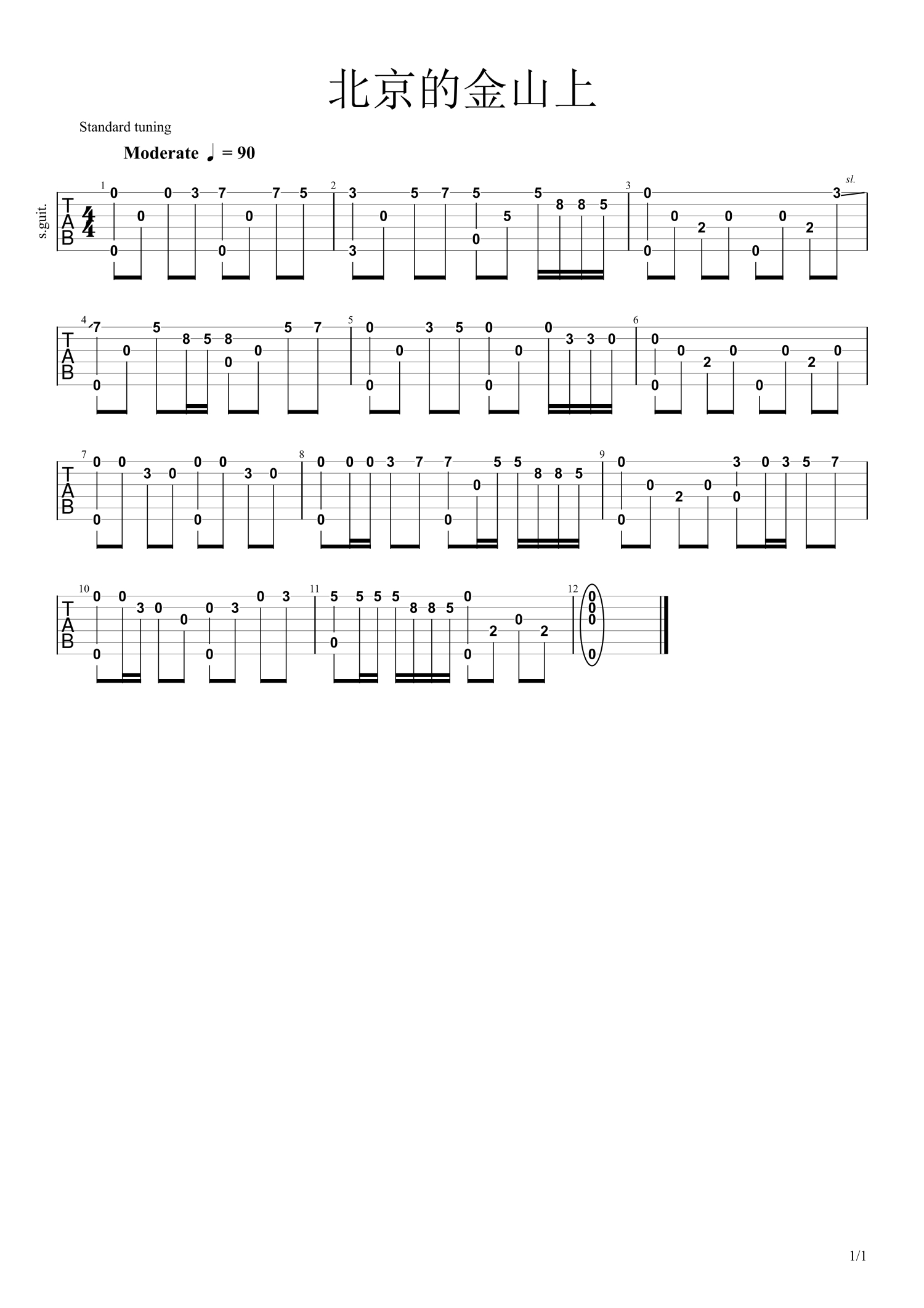 当前位置:琴谱网>吉他独奏>北京的金山上