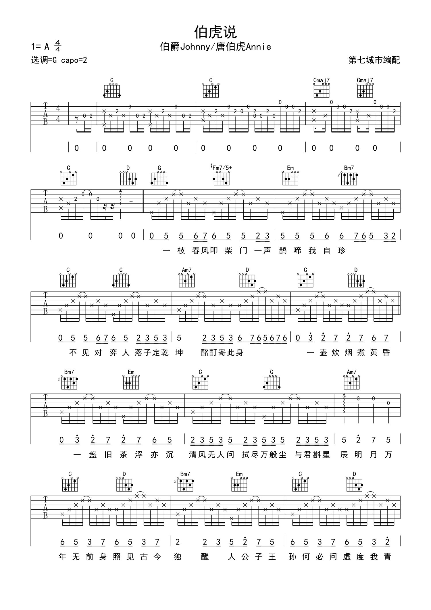 • 伯虎说吉他谱 - 伯爵Johnny/唐伯虎Annie - G调吉他弹唱谱第1张