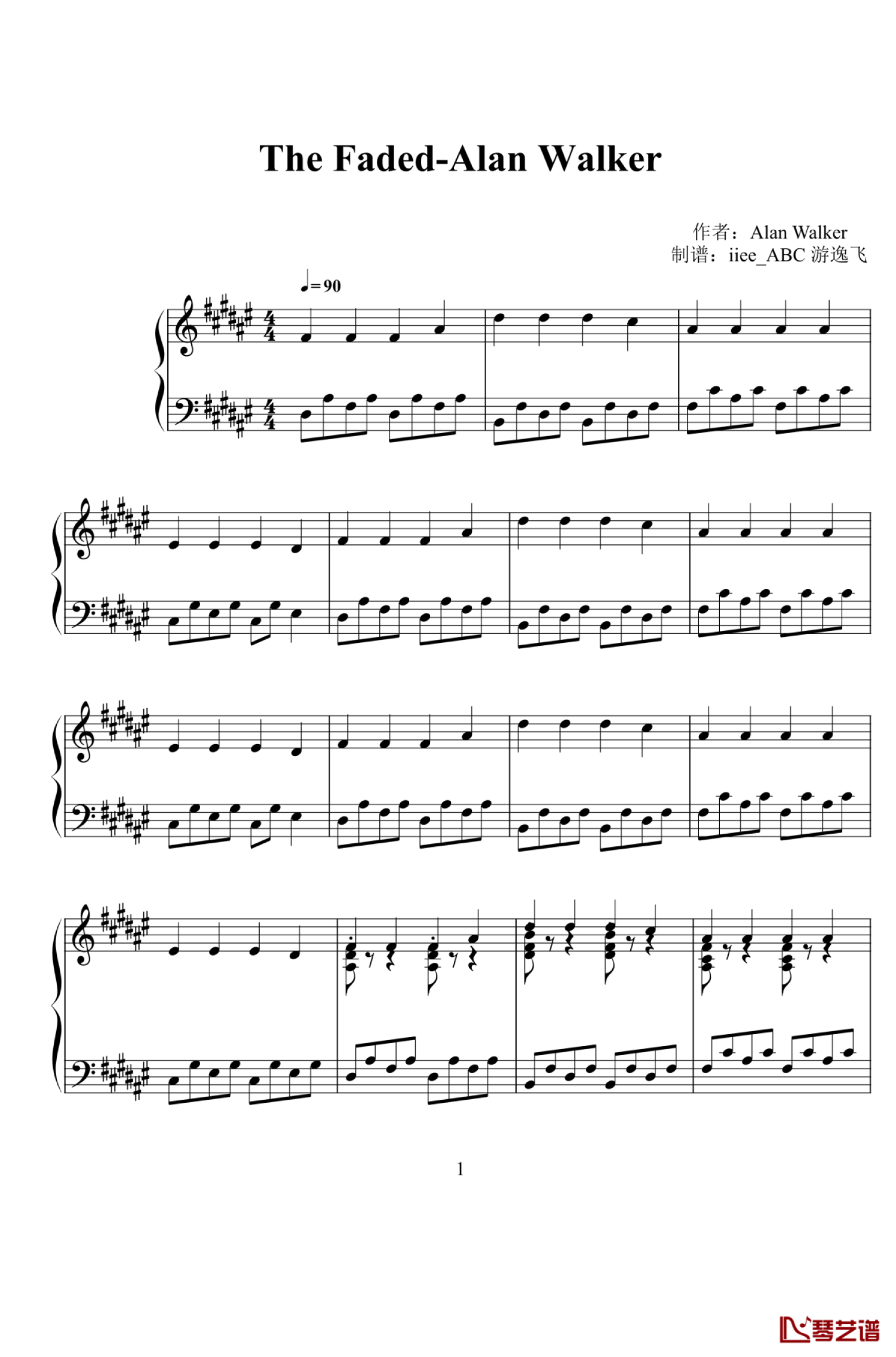 曲谱介绍: Alan Walker《The Feded》钢琴谱