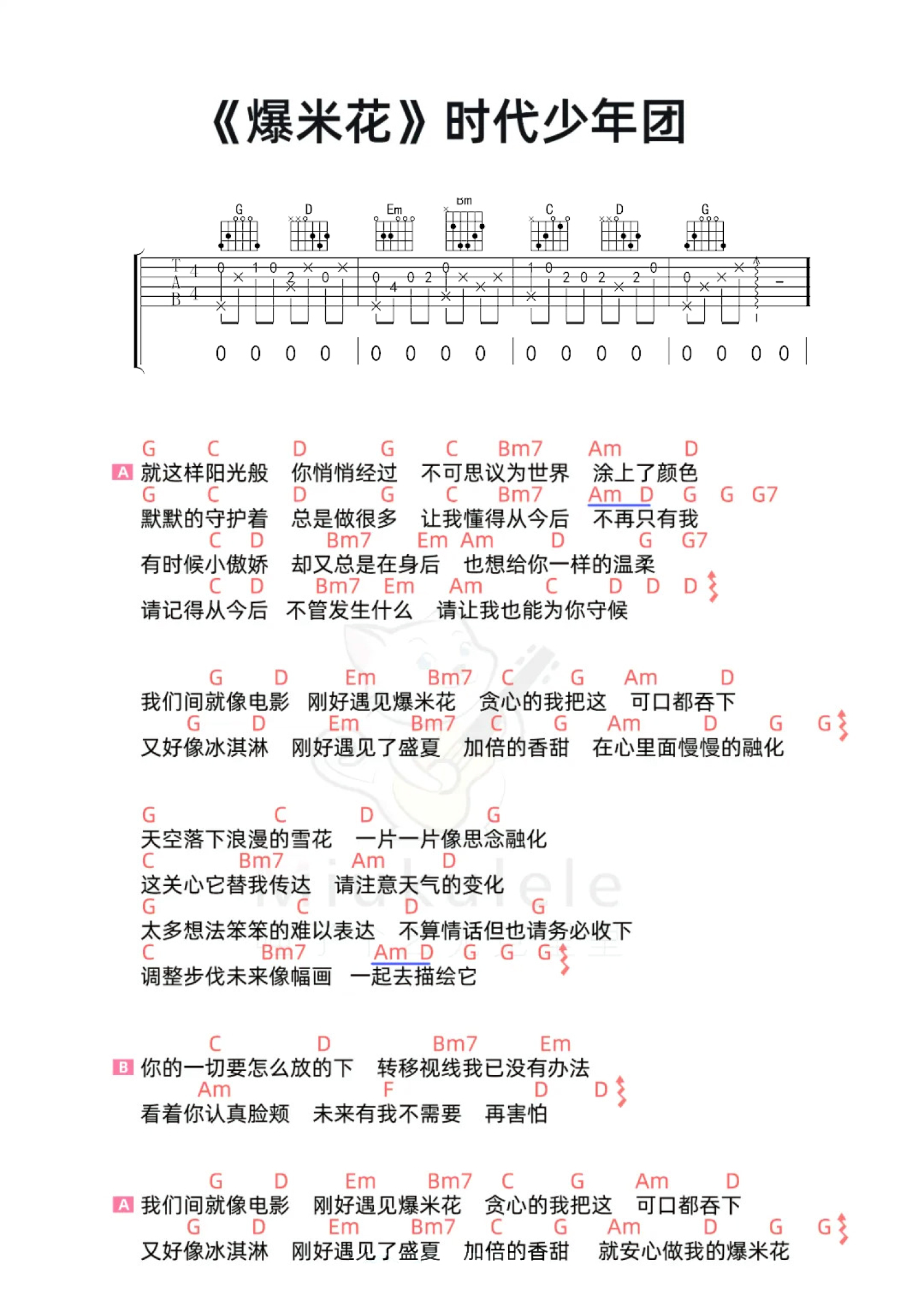 爆米花吉他谱 - 时代少年团 - G调吉他弹唱谱 - 和弦谱