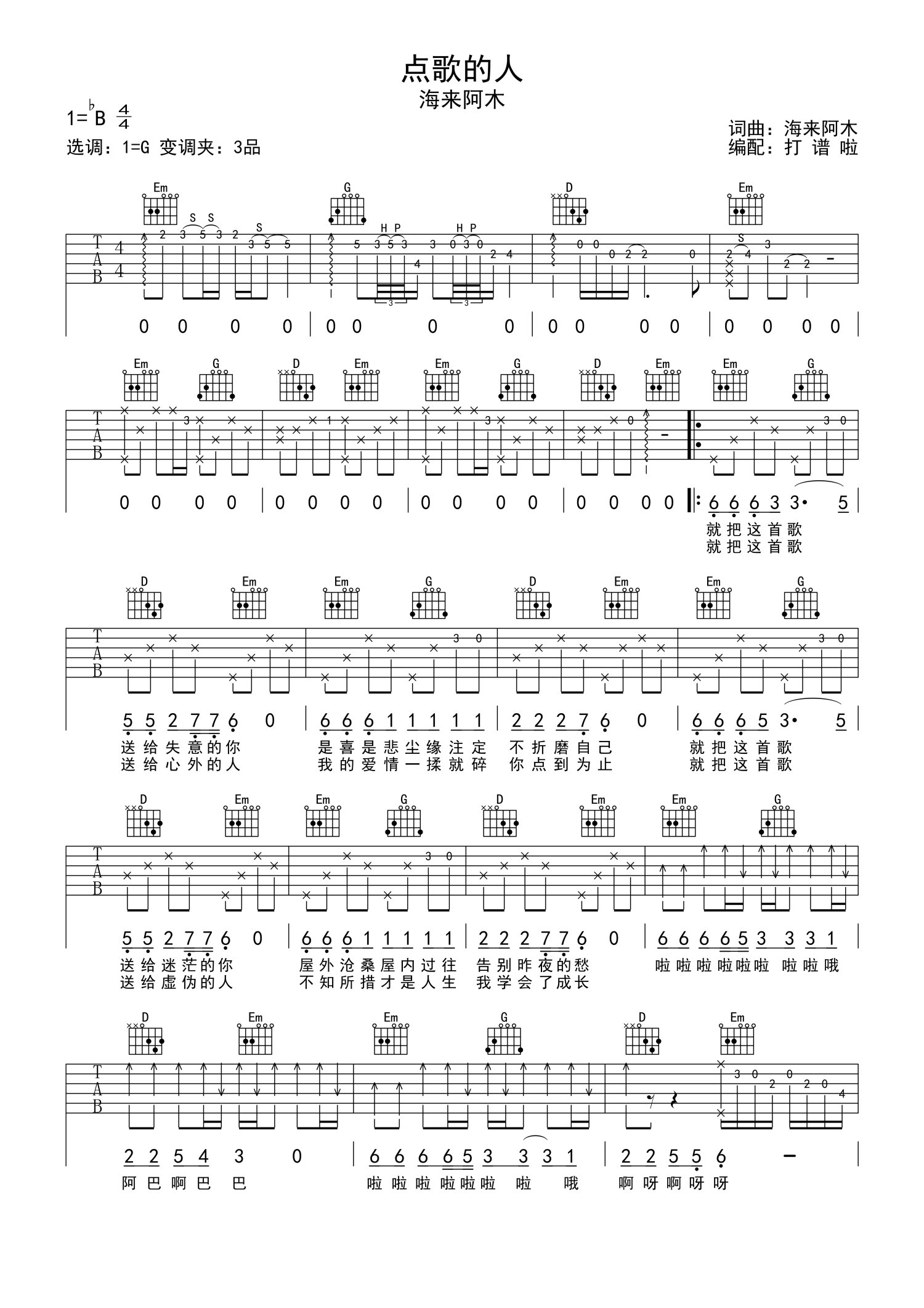 曲谱介绍: 海来阿木《点歌的人》吉他谱_G调吉他弹唱谱