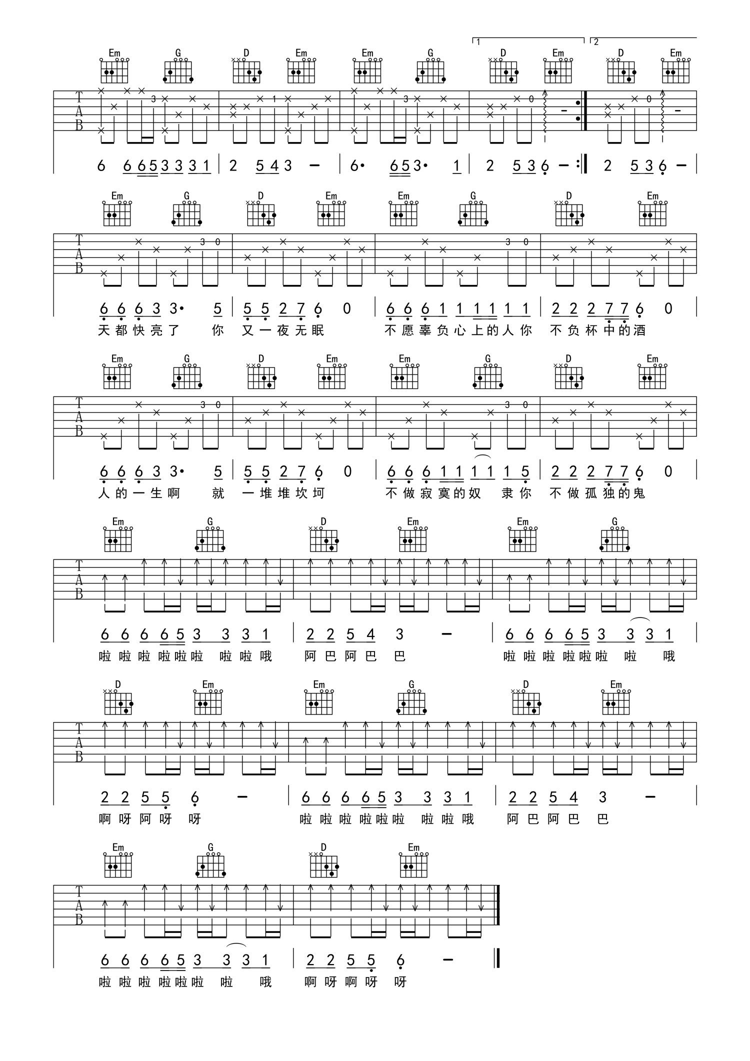 吉他弹唱G调来源:打谱啦1123 浏览2021-04-03 21:34发布图谱共2页