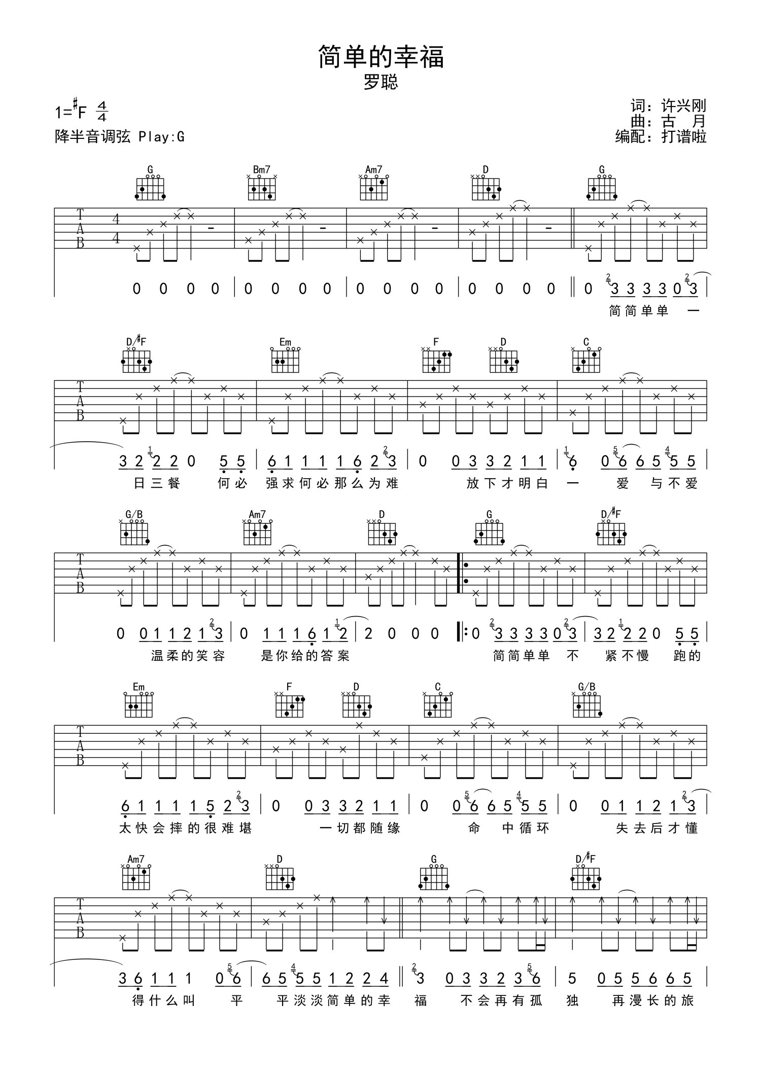曲谱介绍: 罗聪《简单的幸福》吉他谱_C调吉他弹唱谱