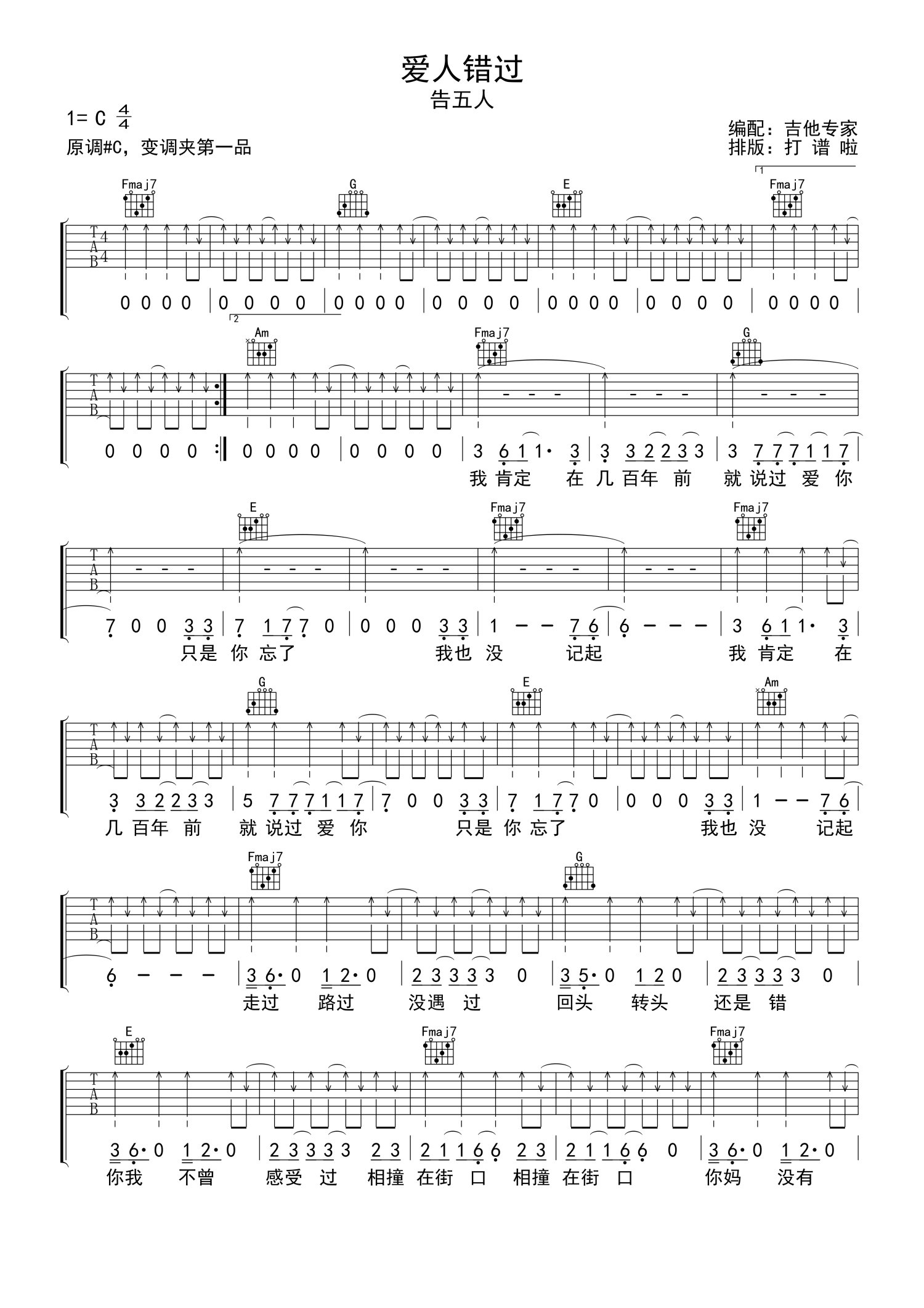 • 爱人错过吉他谱 - 告五人 - C调吉他弹唱谱第1张