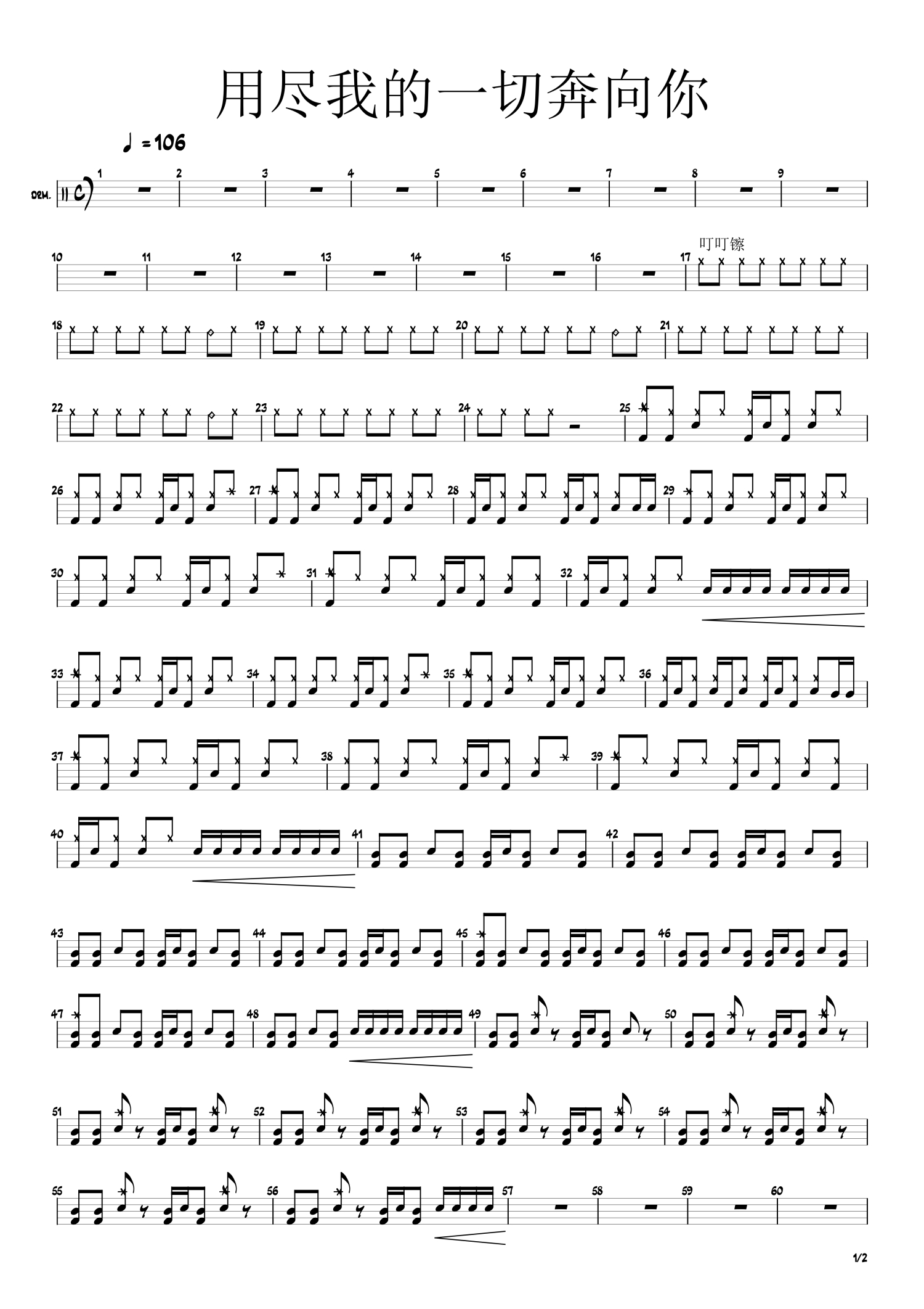 当前位置:琴谱网>架子鼓谱>用尽我的一切奔向你
