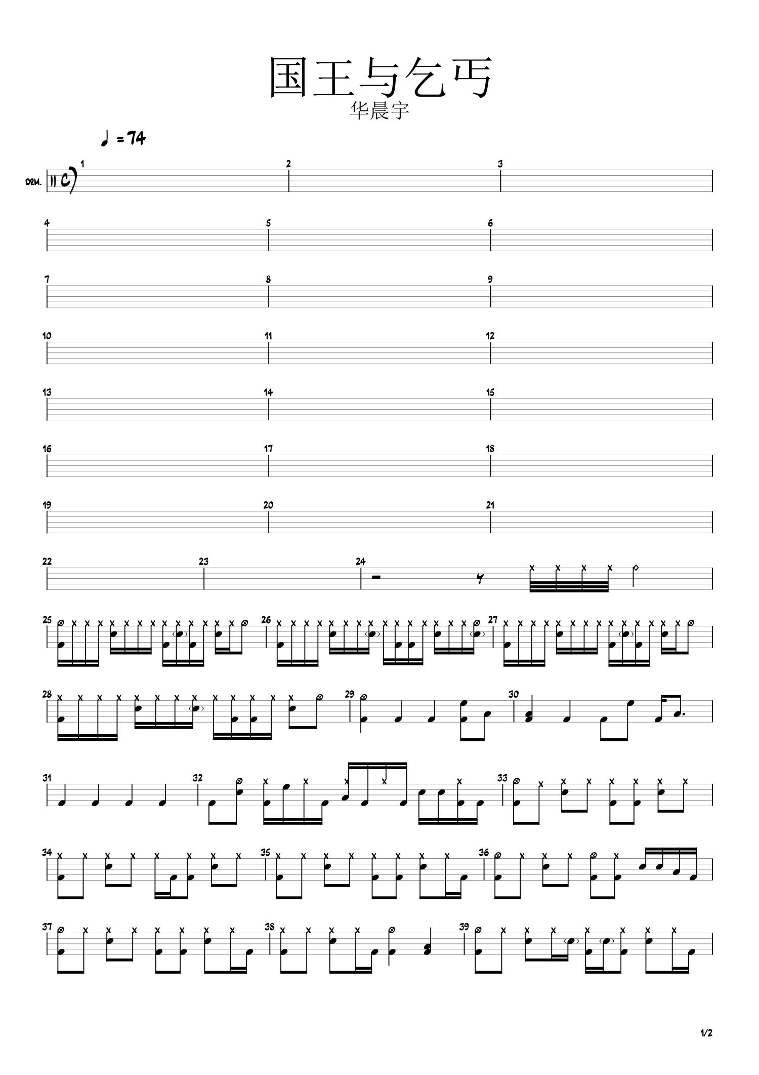 • 国王与乞丐鼓谱 - 华晨宇 - 架子鼓谱第1张