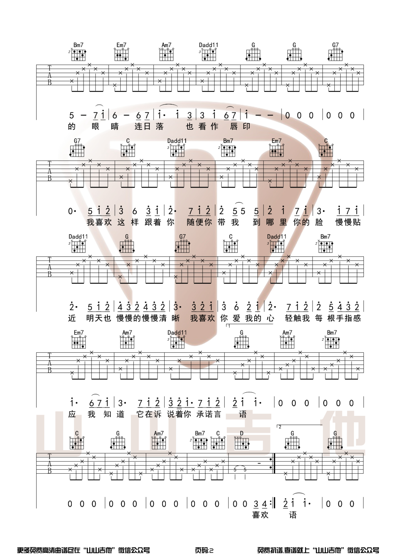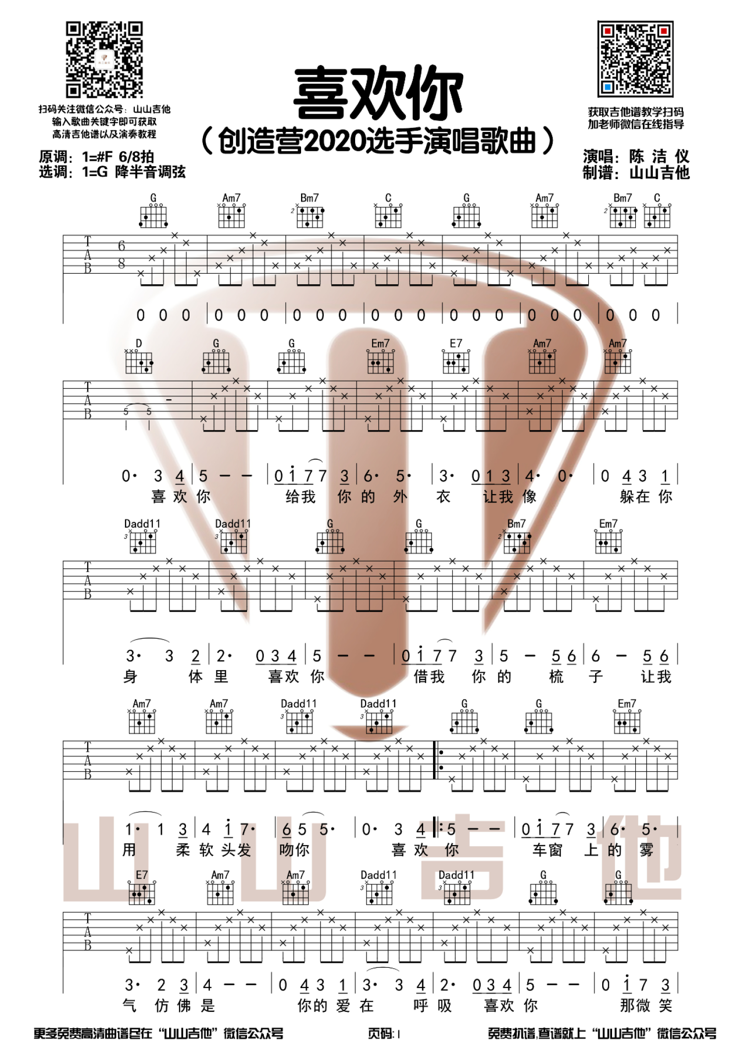 吉他弹唱G调来源:山山吉他10912 浏览2021-04-08 20:52发布图谱共3页